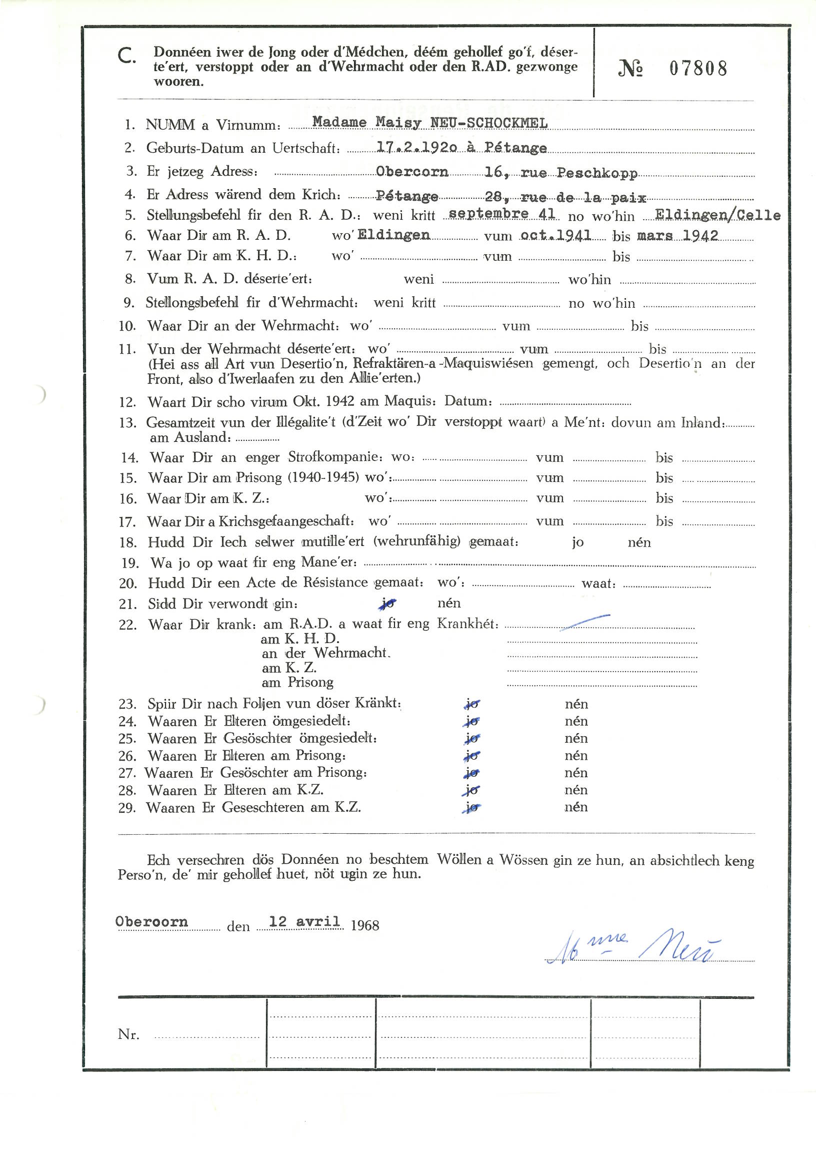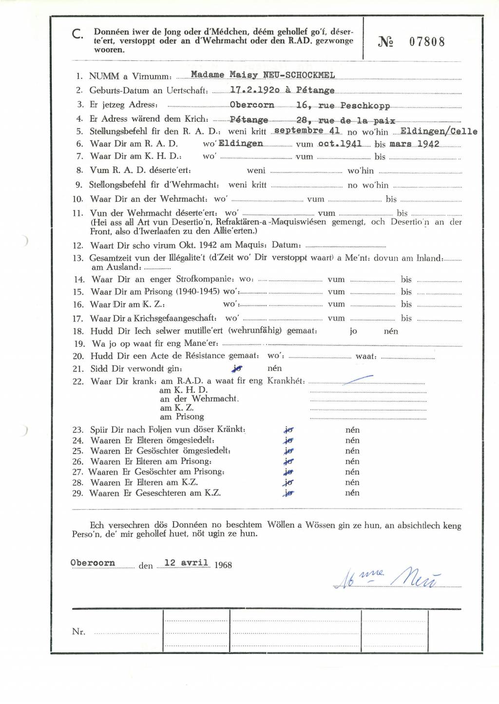 Nom, prénom, nom pendant l'occupation