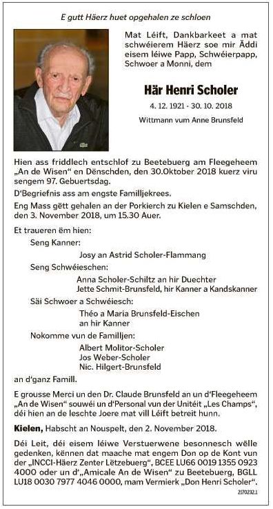 Divers Scholer Henri 04121921 Hobscheid.pdf Télécharger le document RIP_Scholer_Henri Scholer_Henri_04121921_30102018_LW_02112018.jpg Télécharger le document Scholer Henri 04121921 Hobscheid 1 (2).jpg Télécharger le document 1.jpg Télécharger le document 2 (2).jpg Télécharger le document 2.jpg Télécharger le document 3 (2).jpg Télécharger le document 3.jpg Télécharger le document
