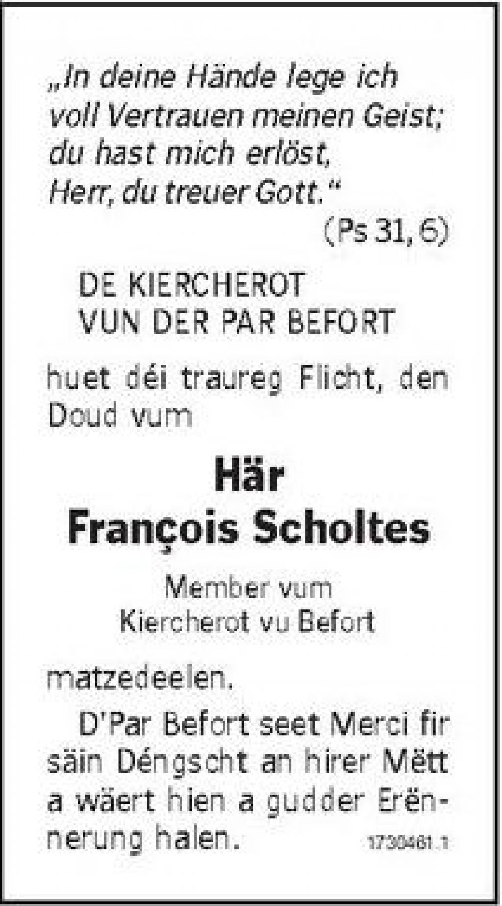 Divers Beaufort3.pdf Télécharger le document Scholtes Francois Scholtes.jpg Télécharger le document Scholtes1.jpg Télécharger le document Scholtes150724.jpg Télécharger le document Scholtes2.jpg Télécharger le document