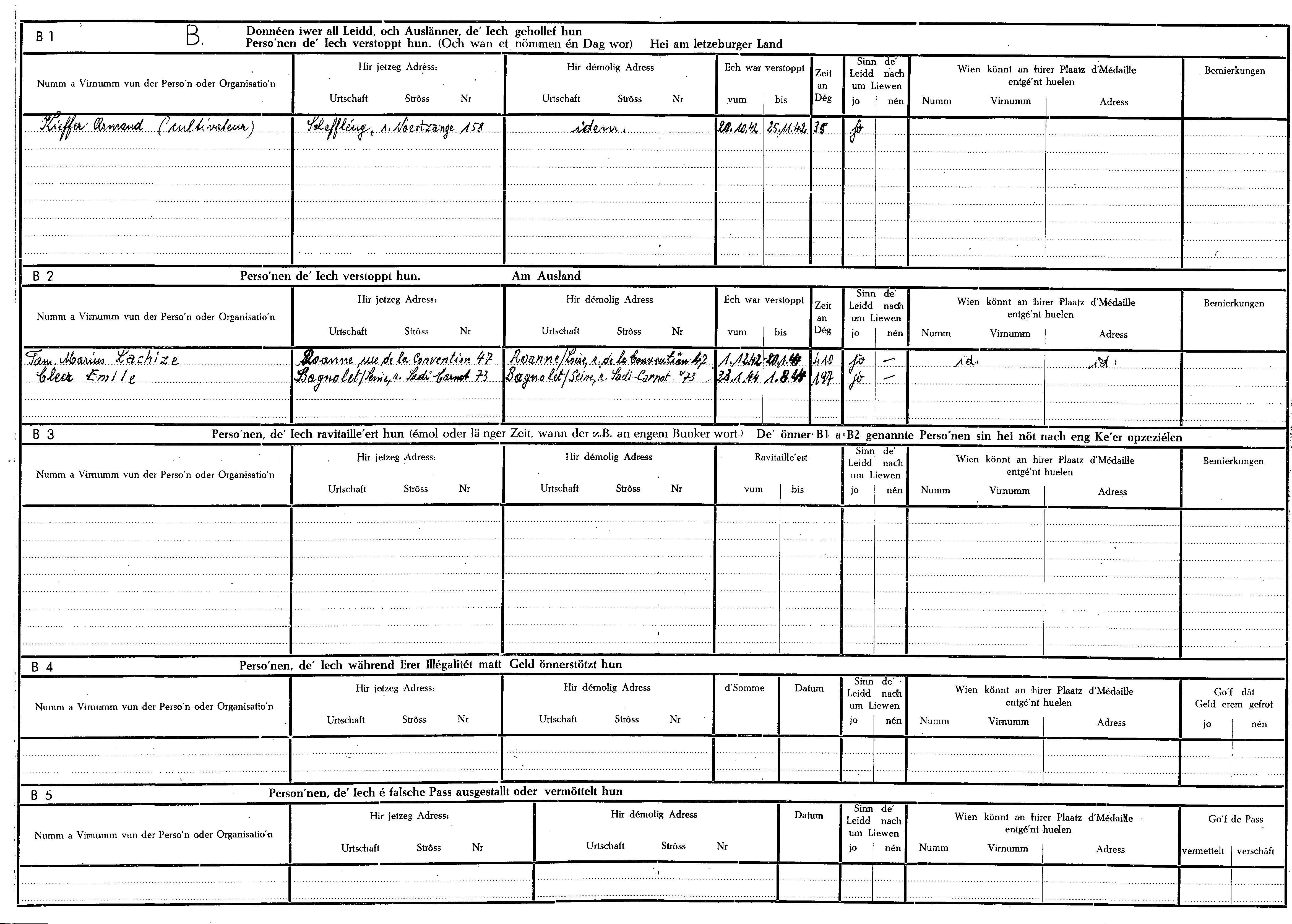 Nom, prénom, nom pendant l'occupation