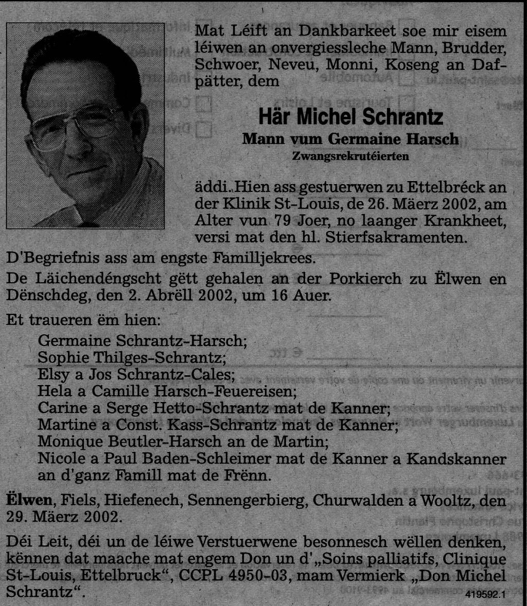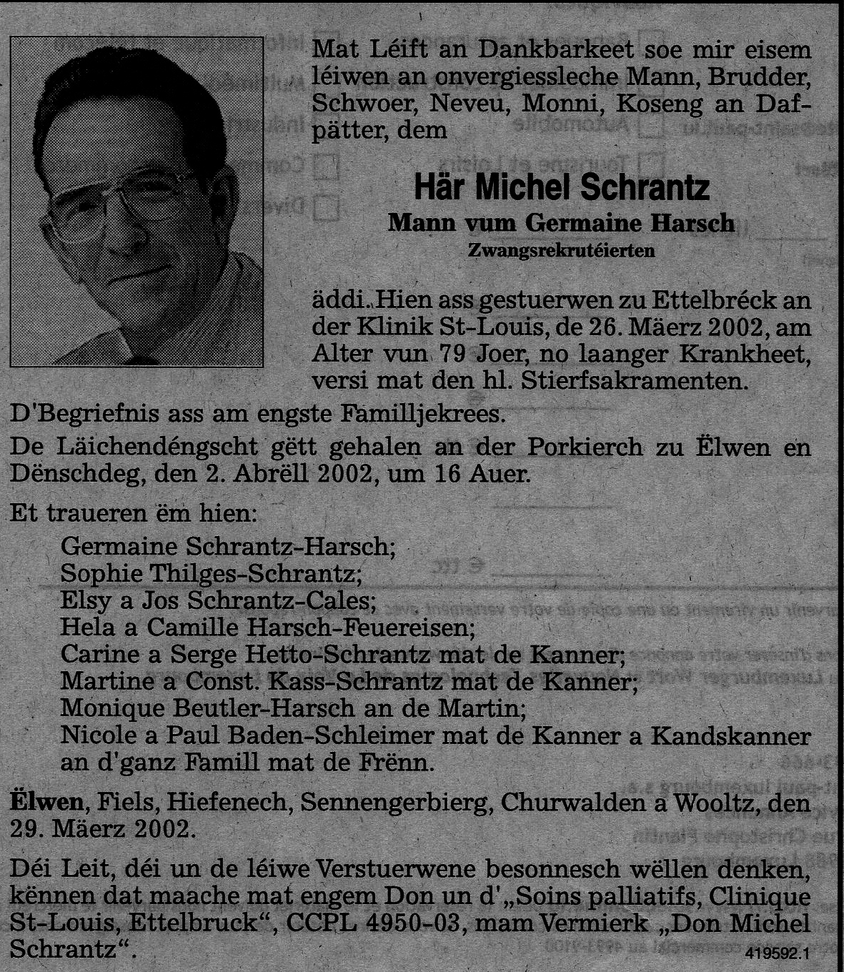 Divers img487.jpg Télécharger le document img488.jpg Télécharger le document Schrantz Michel 20091922 Troisvierges 26032002.jpg Télécharger le document Schrantz Michel 20091922 Troisvierges 27032002 KERGEN Kriegserinnerungen eines Oslinger Resistenzler.JPG Télécharger le document