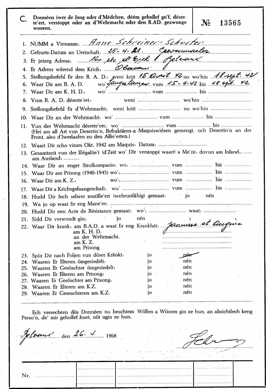 Nom, prénom, nom pendant l'occupation
