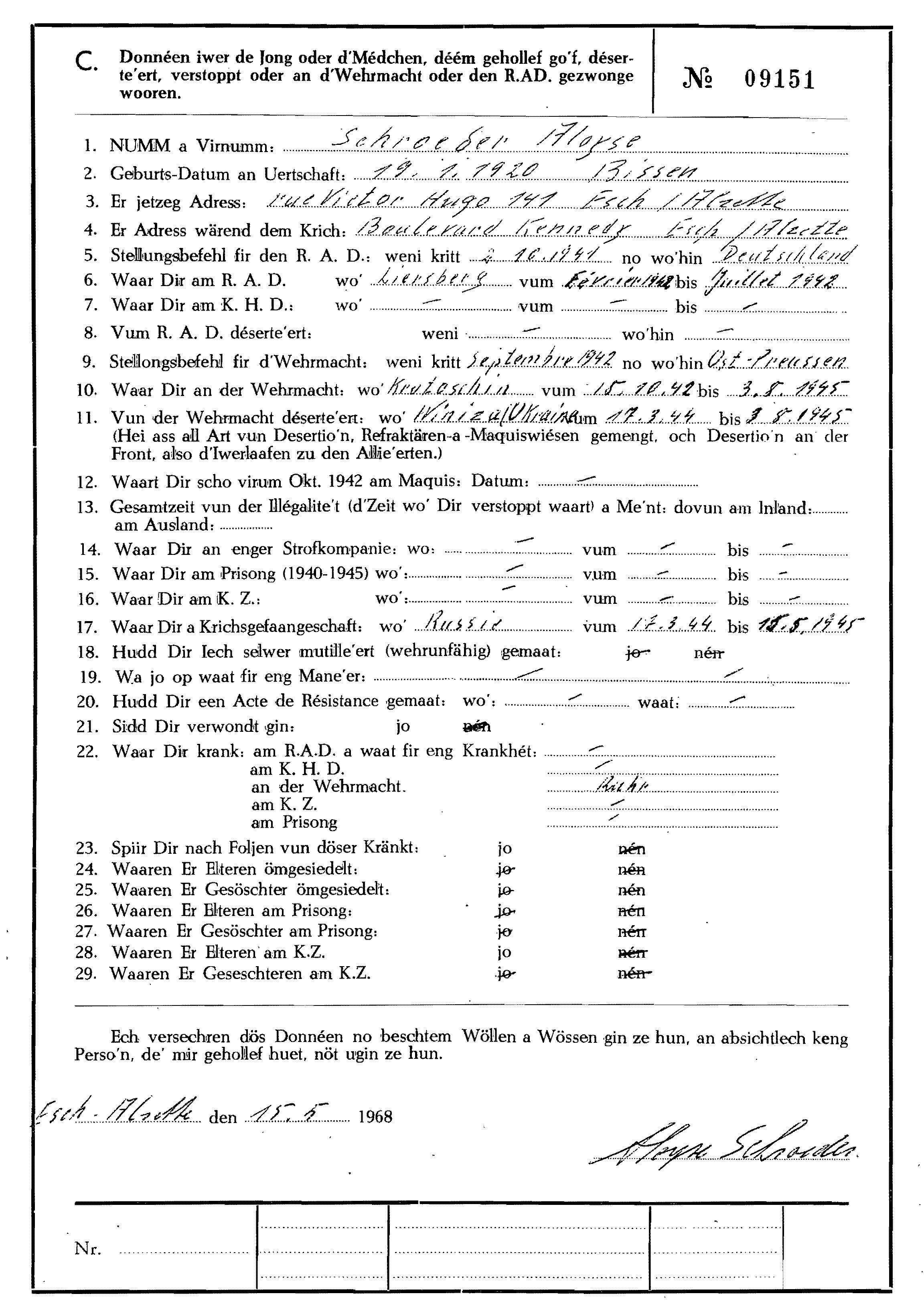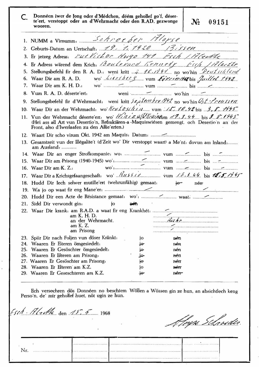 Divers Schroeder Alois.jpg Télécharger le document SCHROEDER Aloyse 19011920 Bissen 1.jpg Télécharger le document 2.jpg Télécharger le document 3.jpg Télécharger le document