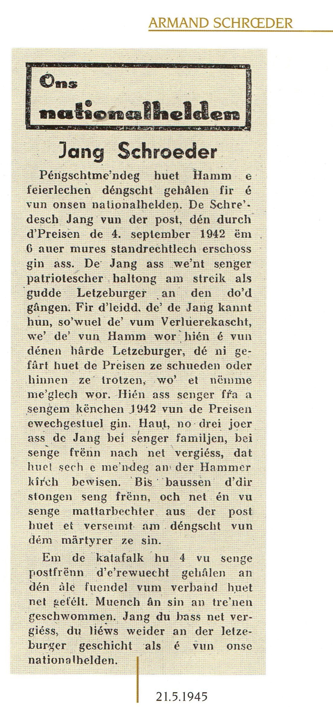 Schroeder Jang_Armand img318.jpg Télécharger le document img319.jpg Télécharger le document img320.jpg Télécharger le document img321.jpg Télécharger le document img322.jpg Télécharger le document img323.jpg Télécharger le document Schroeder Jean 03091942 Poste-Aldringer Luxembourg EG.pdf Télécharger le document