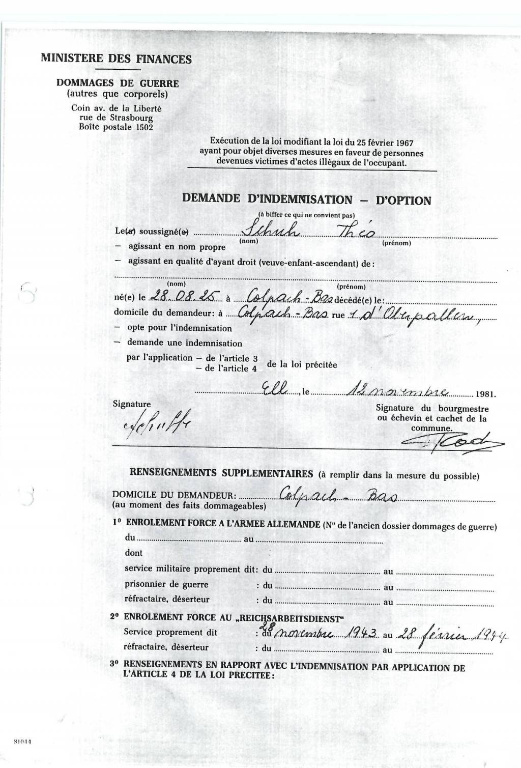 Nom, prénom, nom pendant l'occupation