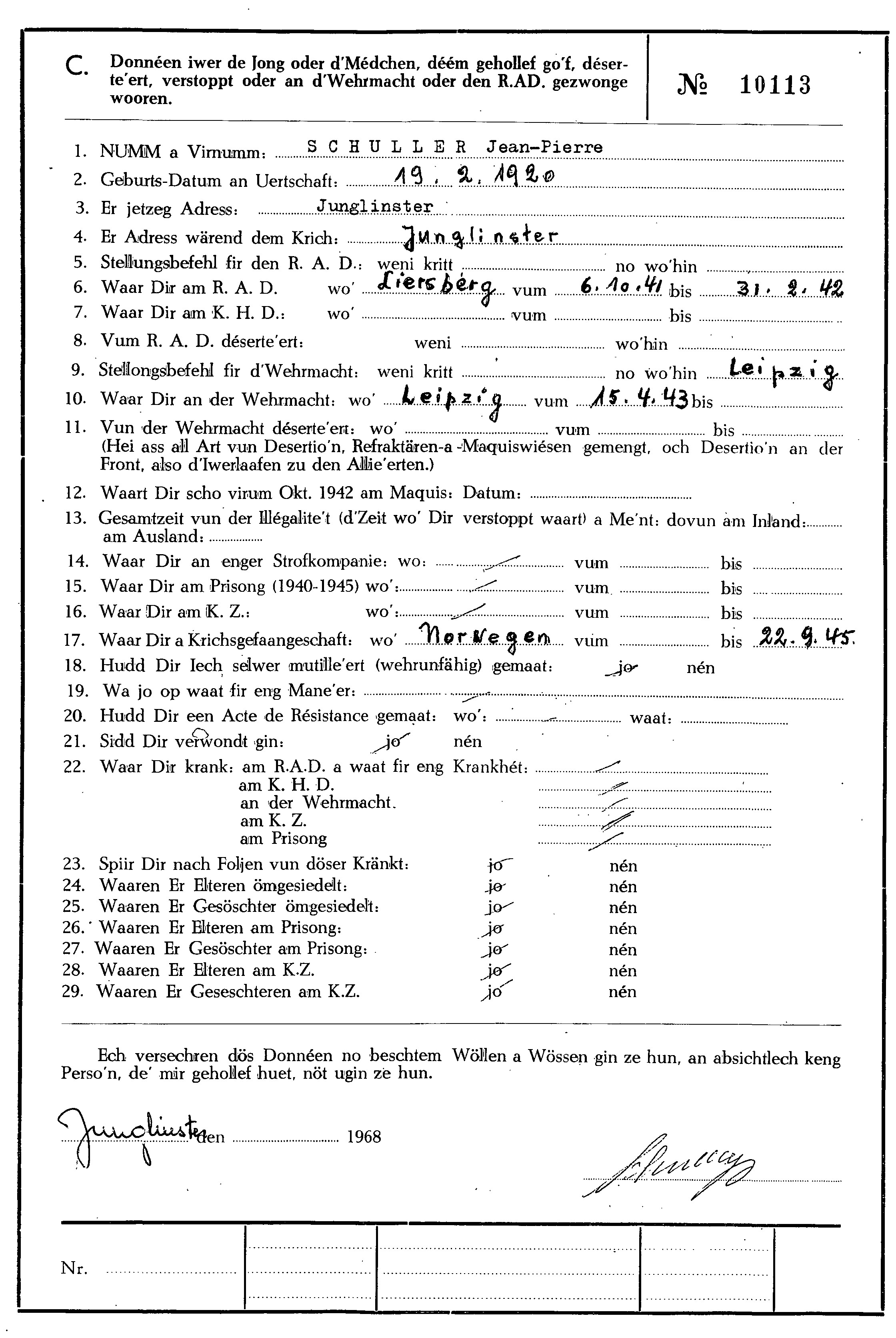 Nom, prénom, nom pendant l'occupation