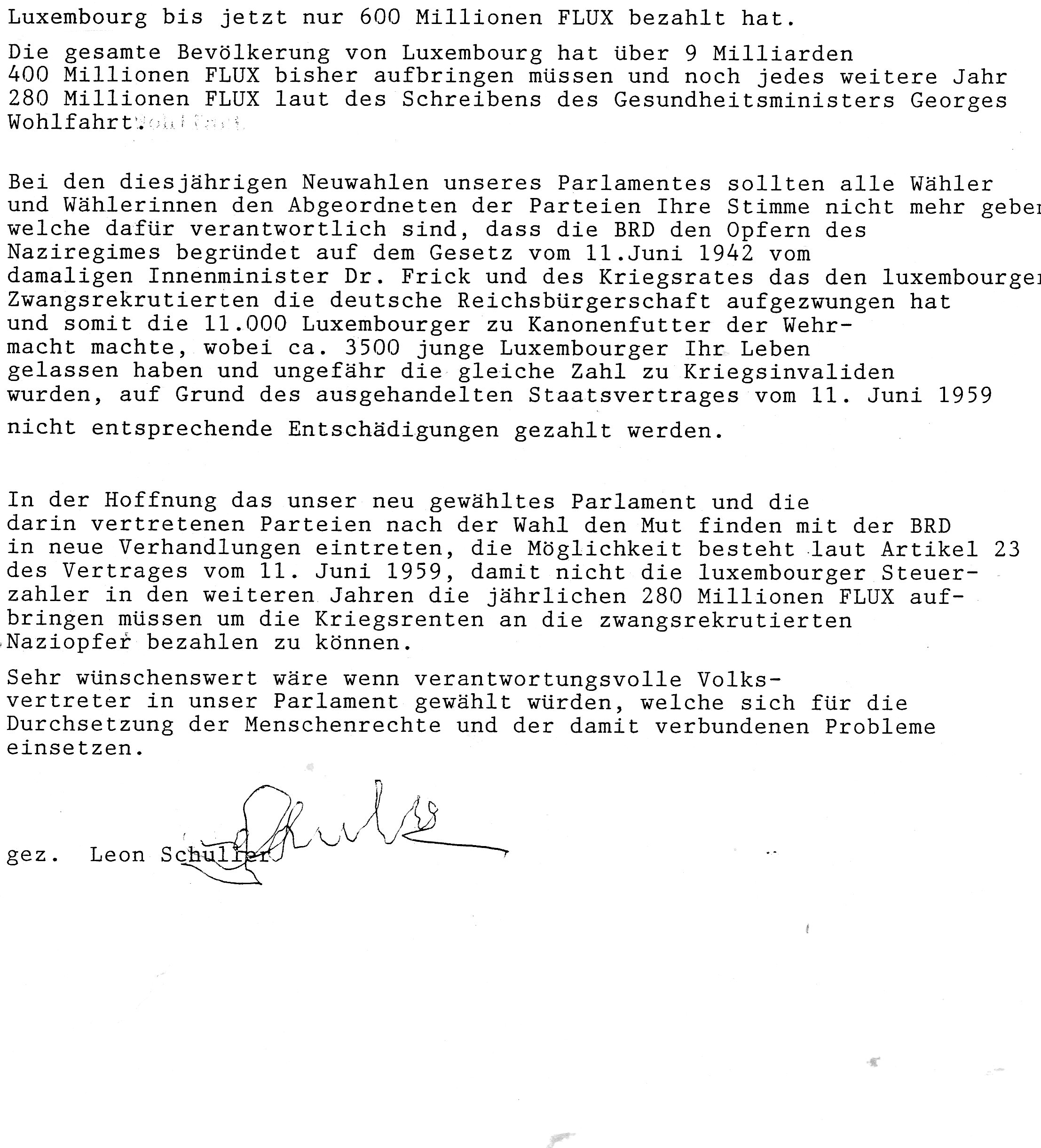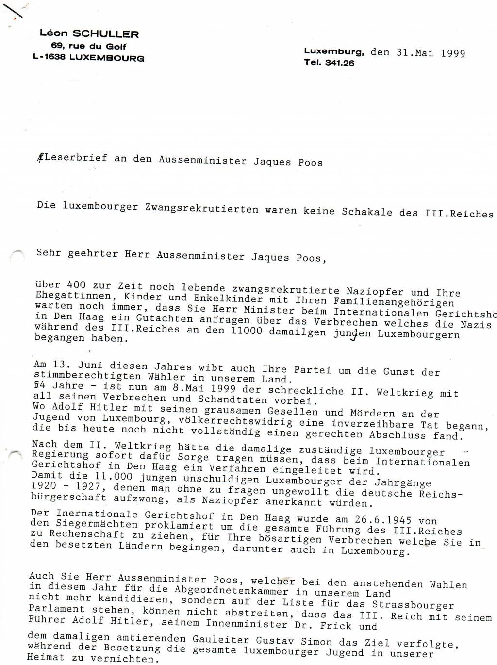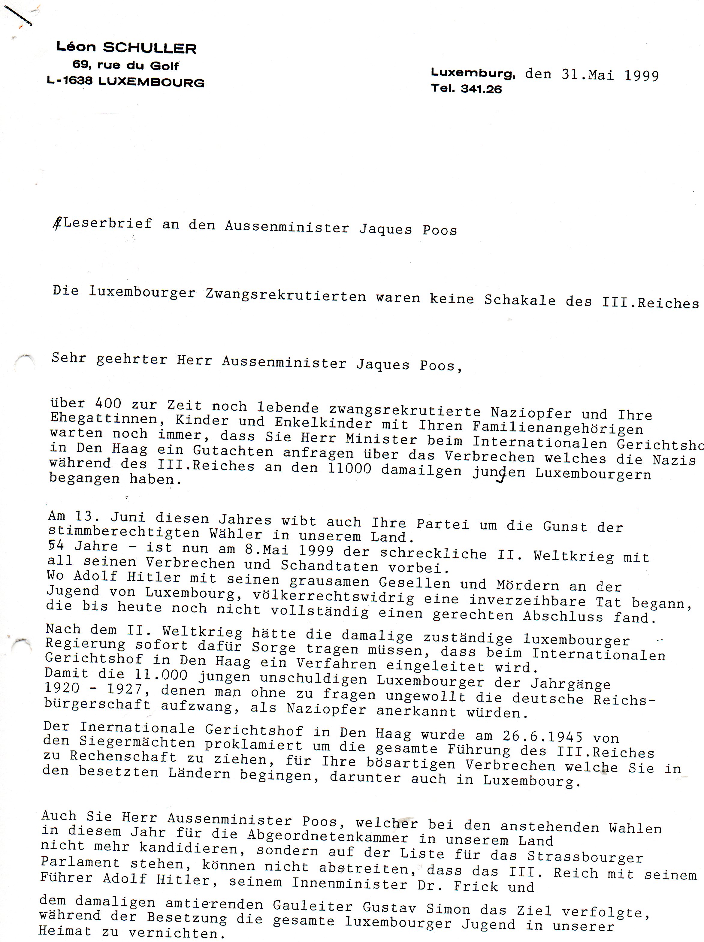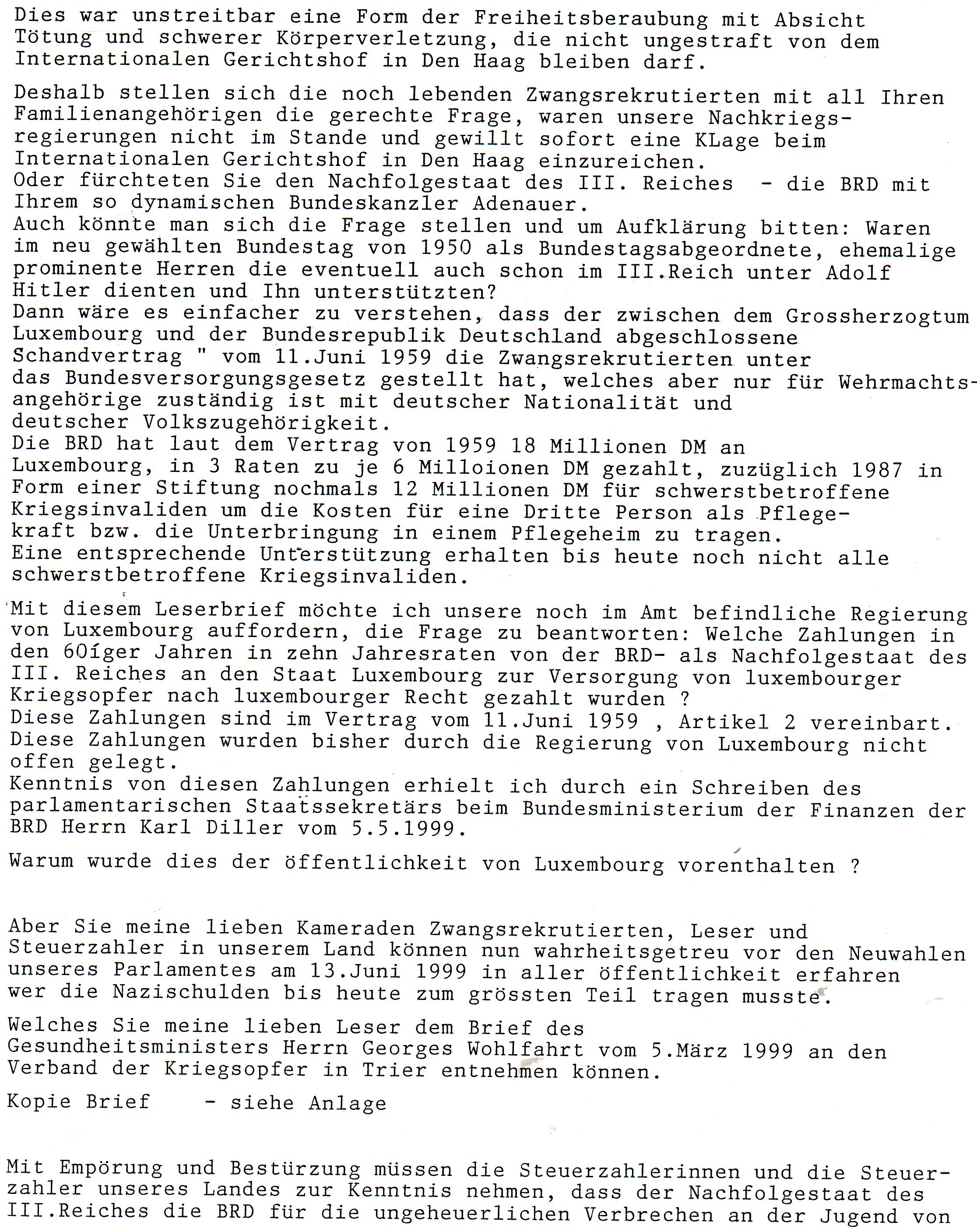 Leserbrief an Poos