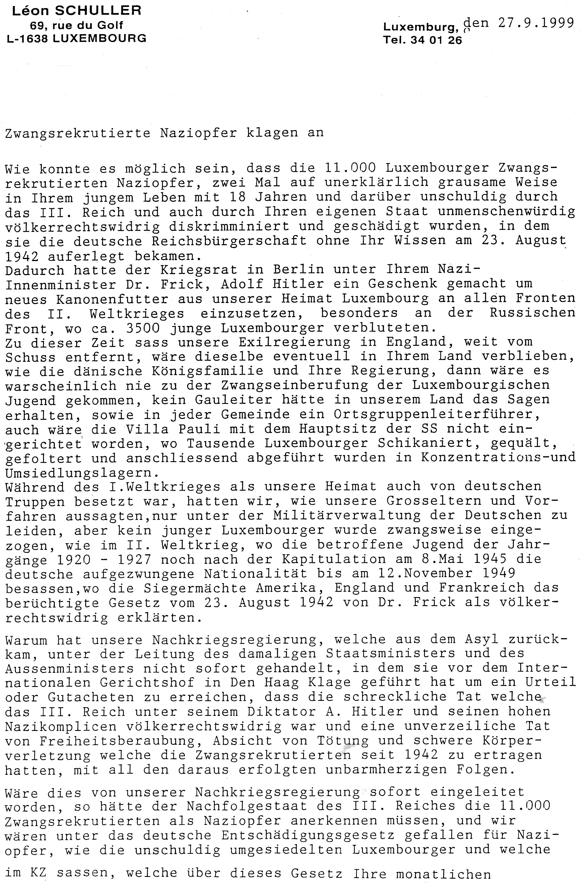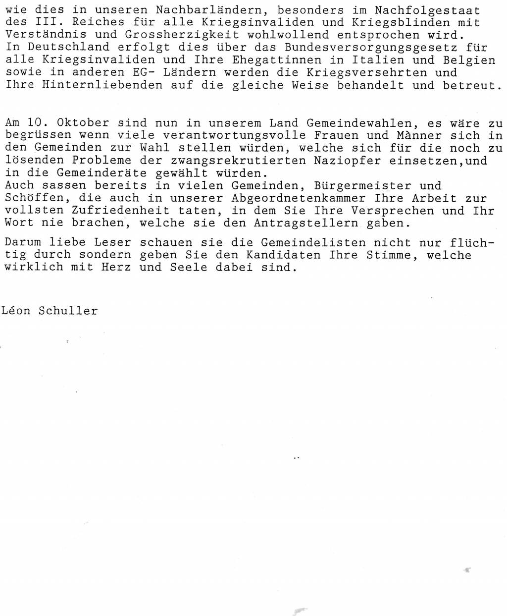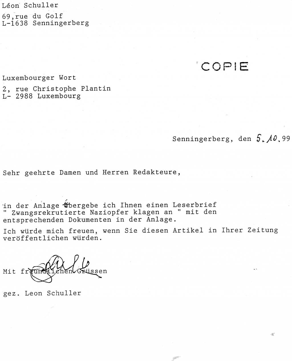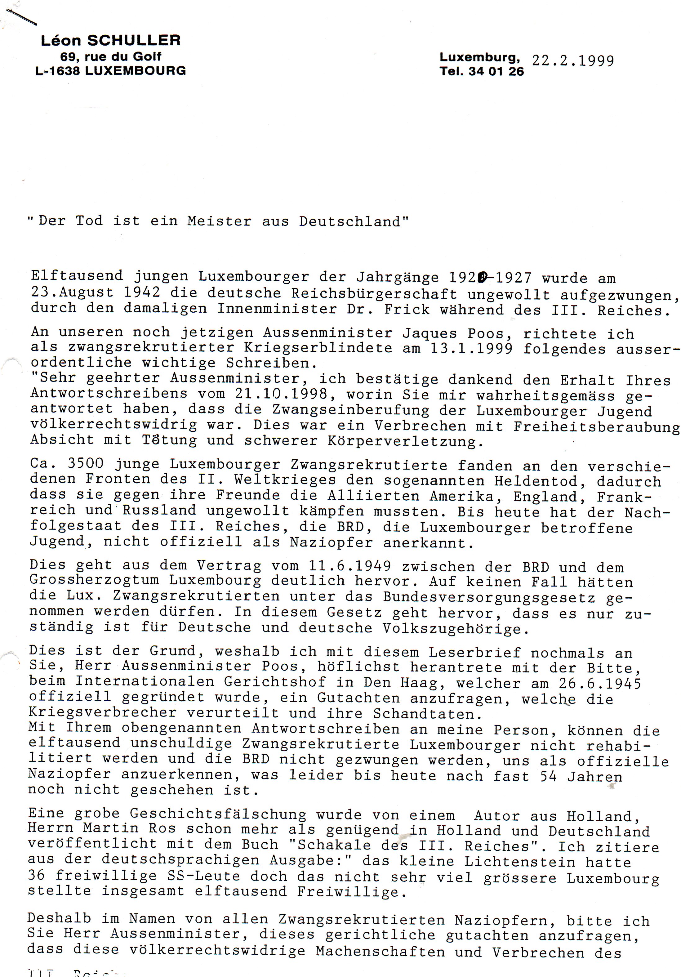 Leserbrief an Poos