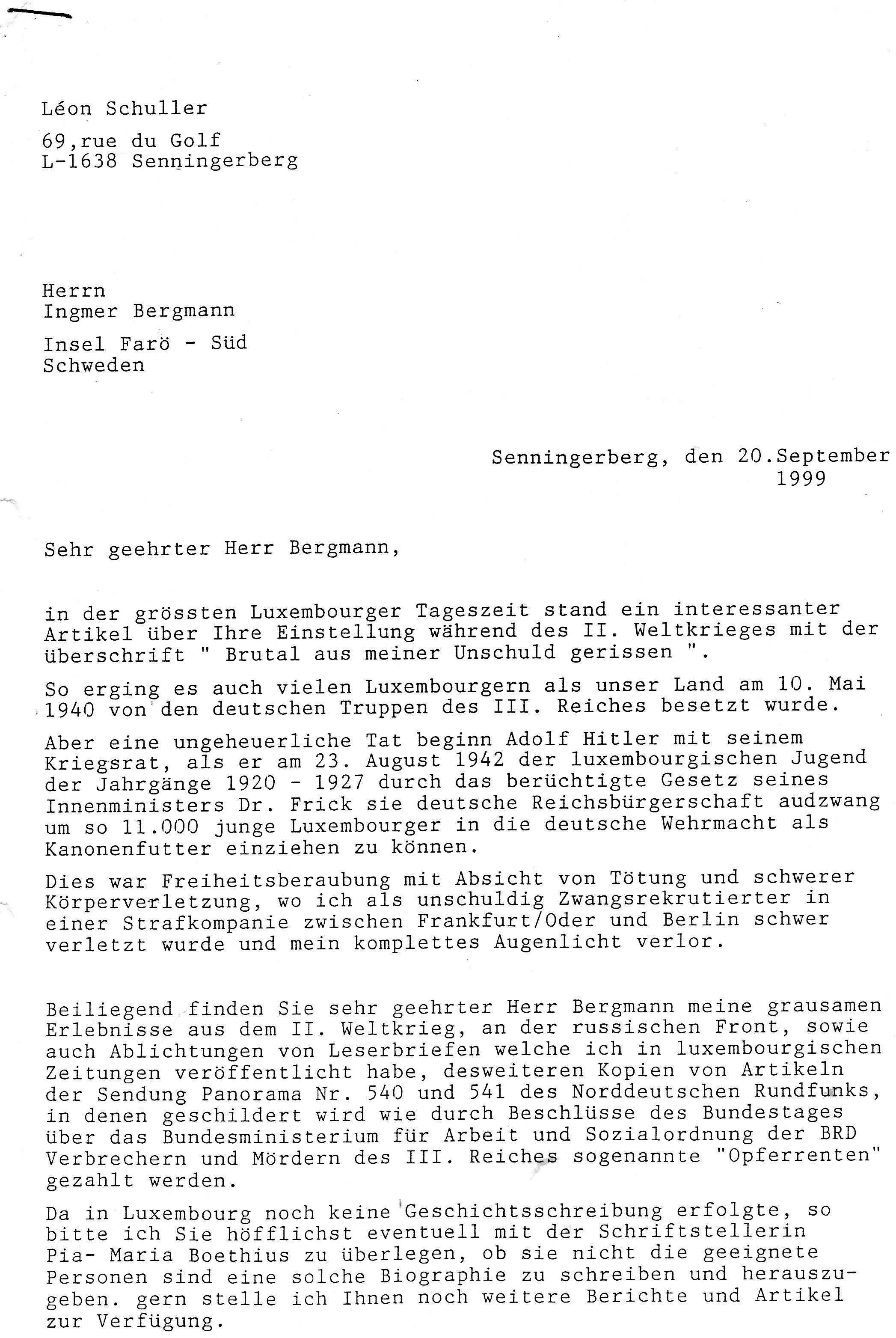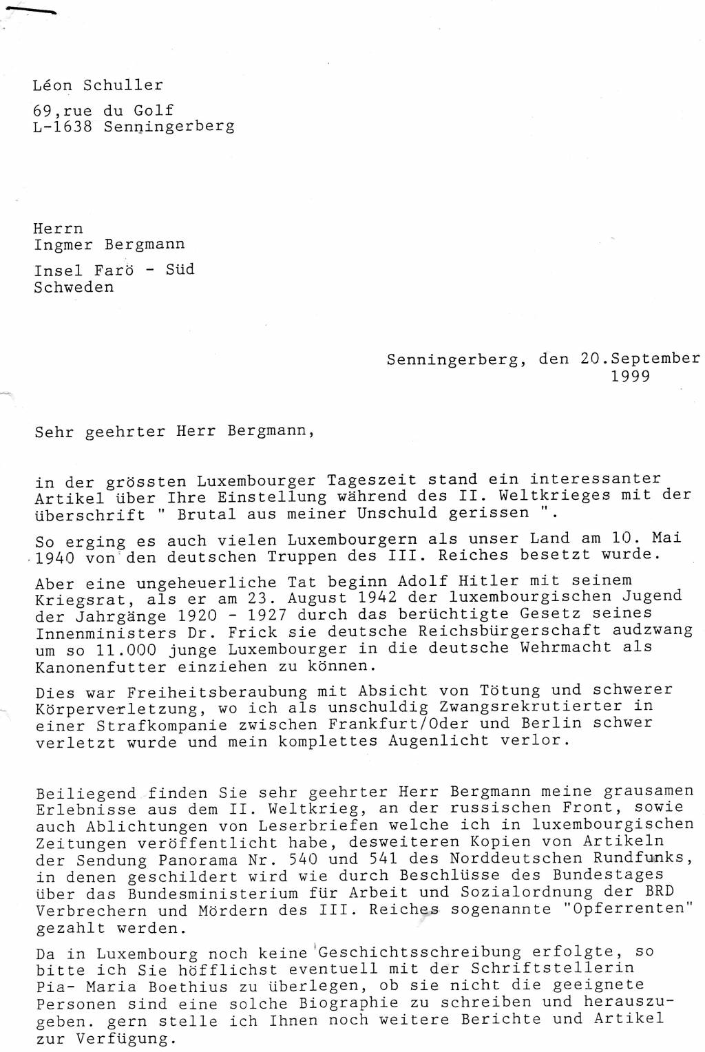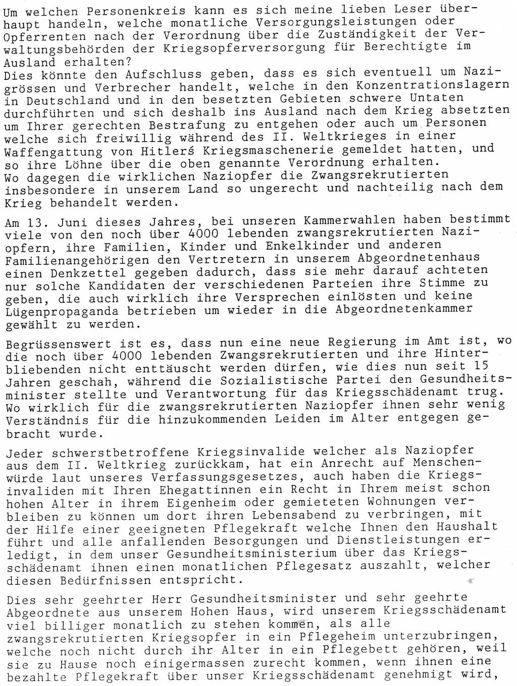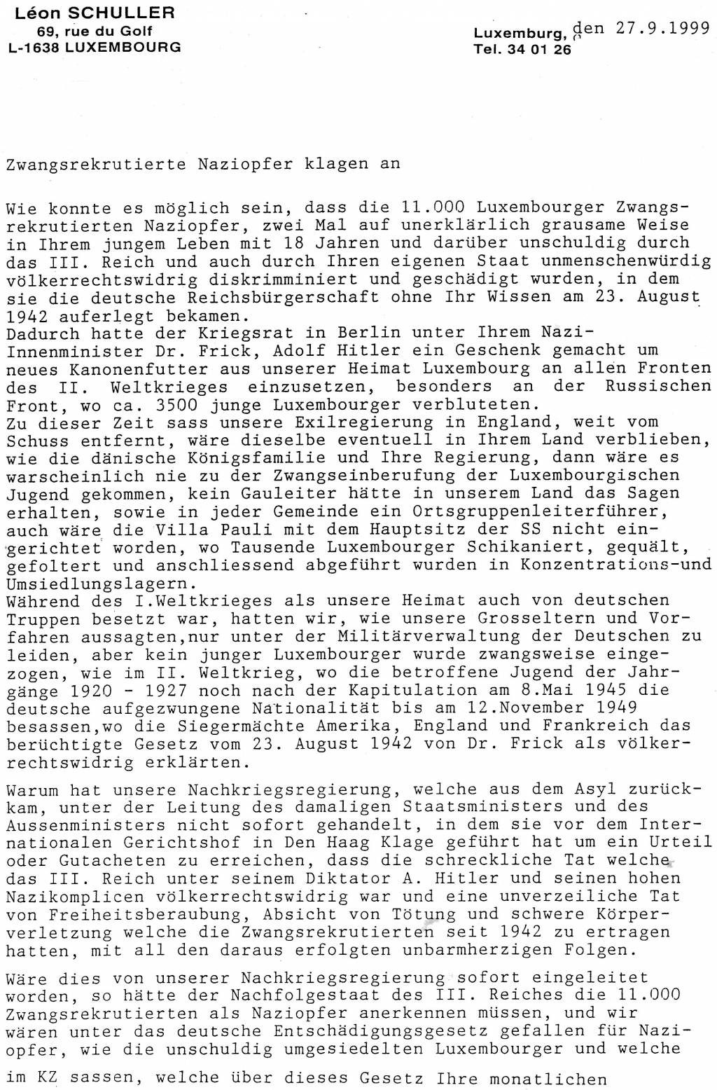 Leserbrief an Poos