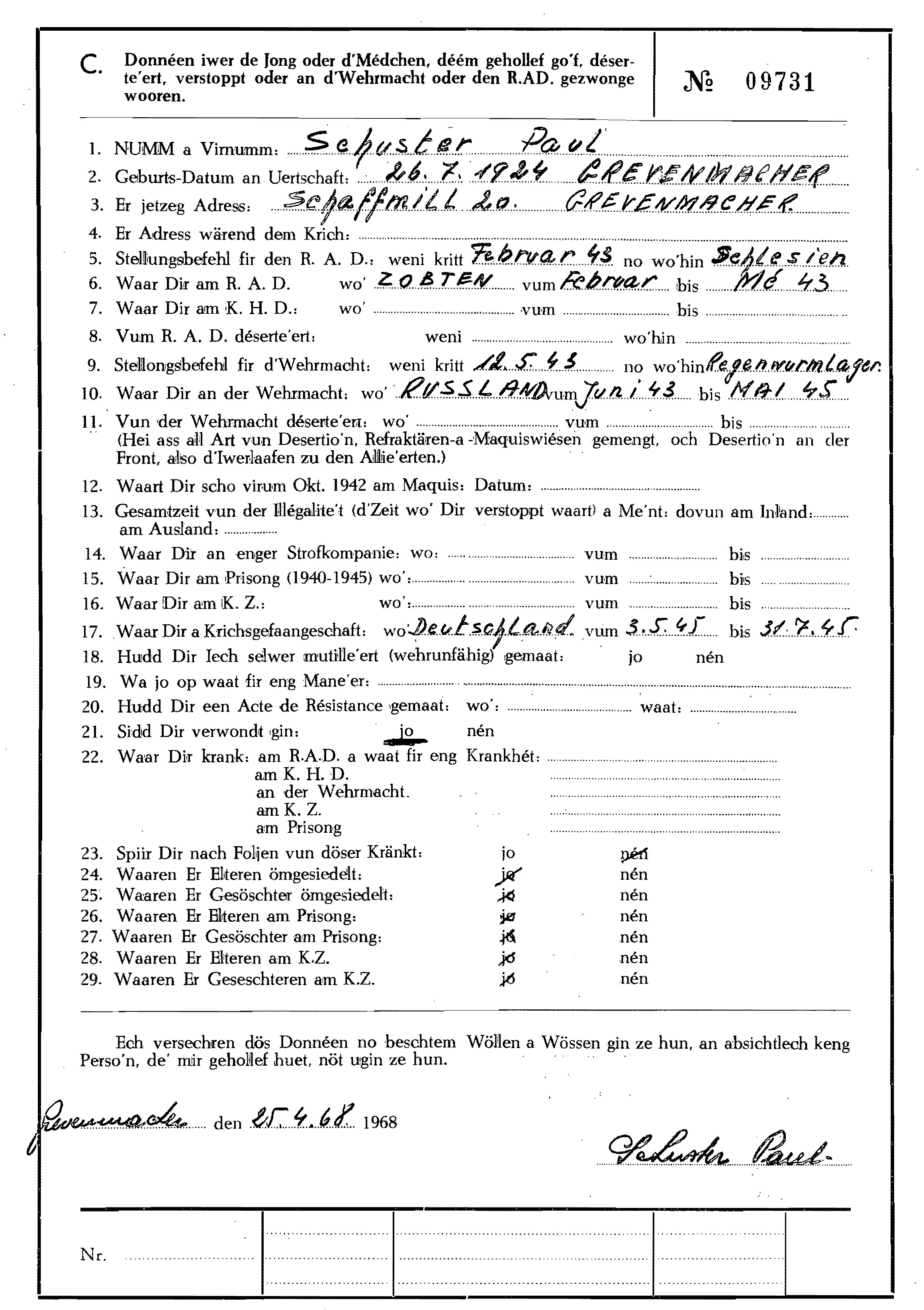 SCHUSTER Paul 26071924 Grevenmacher 1.jpg Télécharger le document 2.jpg Télécharger le document 3.jpg Télécharger le document