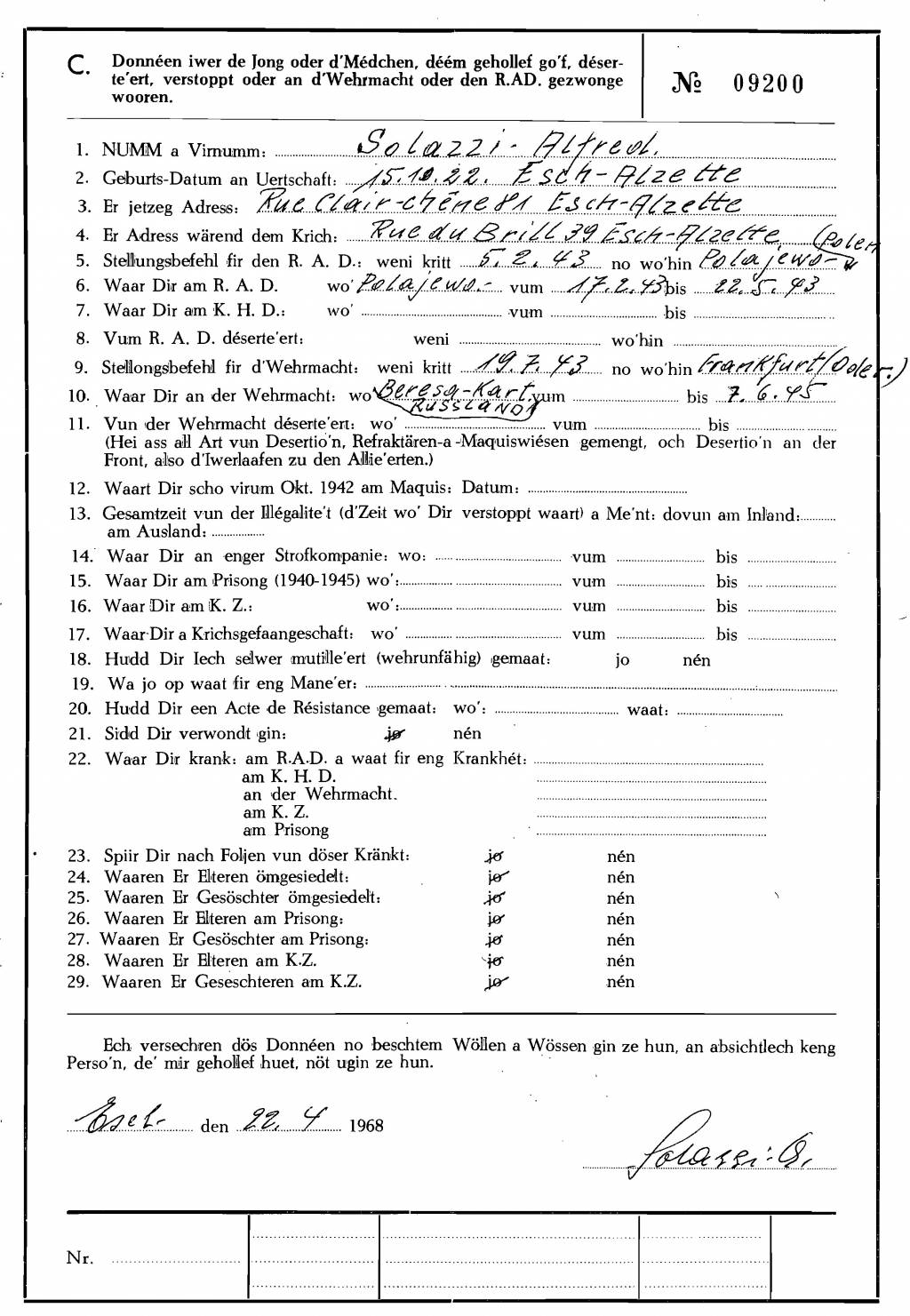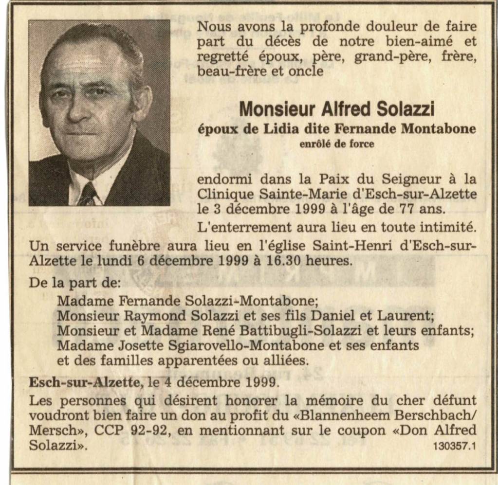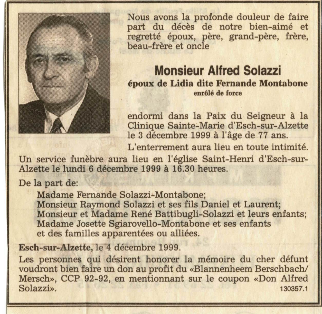 Divers Solazzi Alfred 15101922 Esch Alzette THEISEN Emile RAD Polajewo.jpg Télécharger le document SOLAZZI Alfred 15101922 Esch sur Alzette 1.jpg Télécharger le document 2.jpg Télécharger le document 3.jpg Télécharger le document
