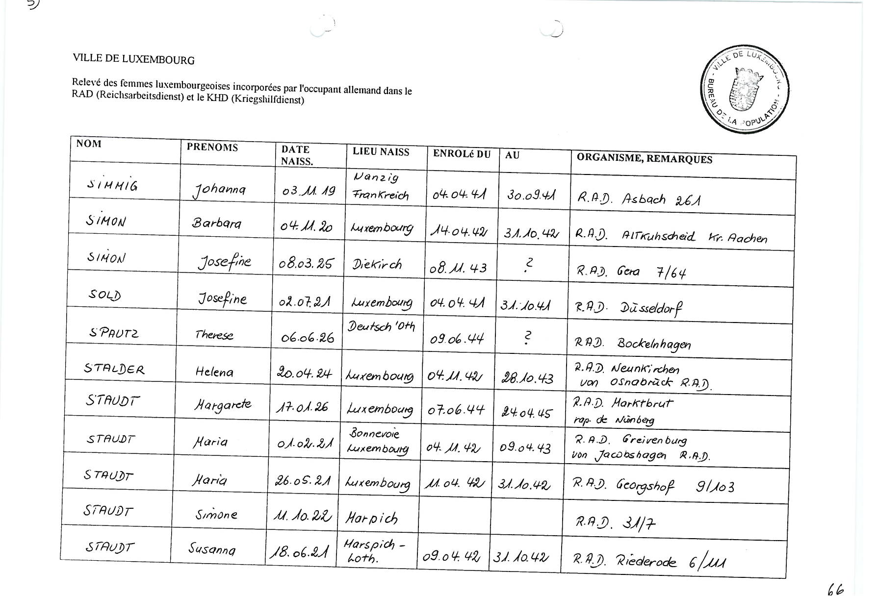 Nom, prénom, nom pendant l'occupation