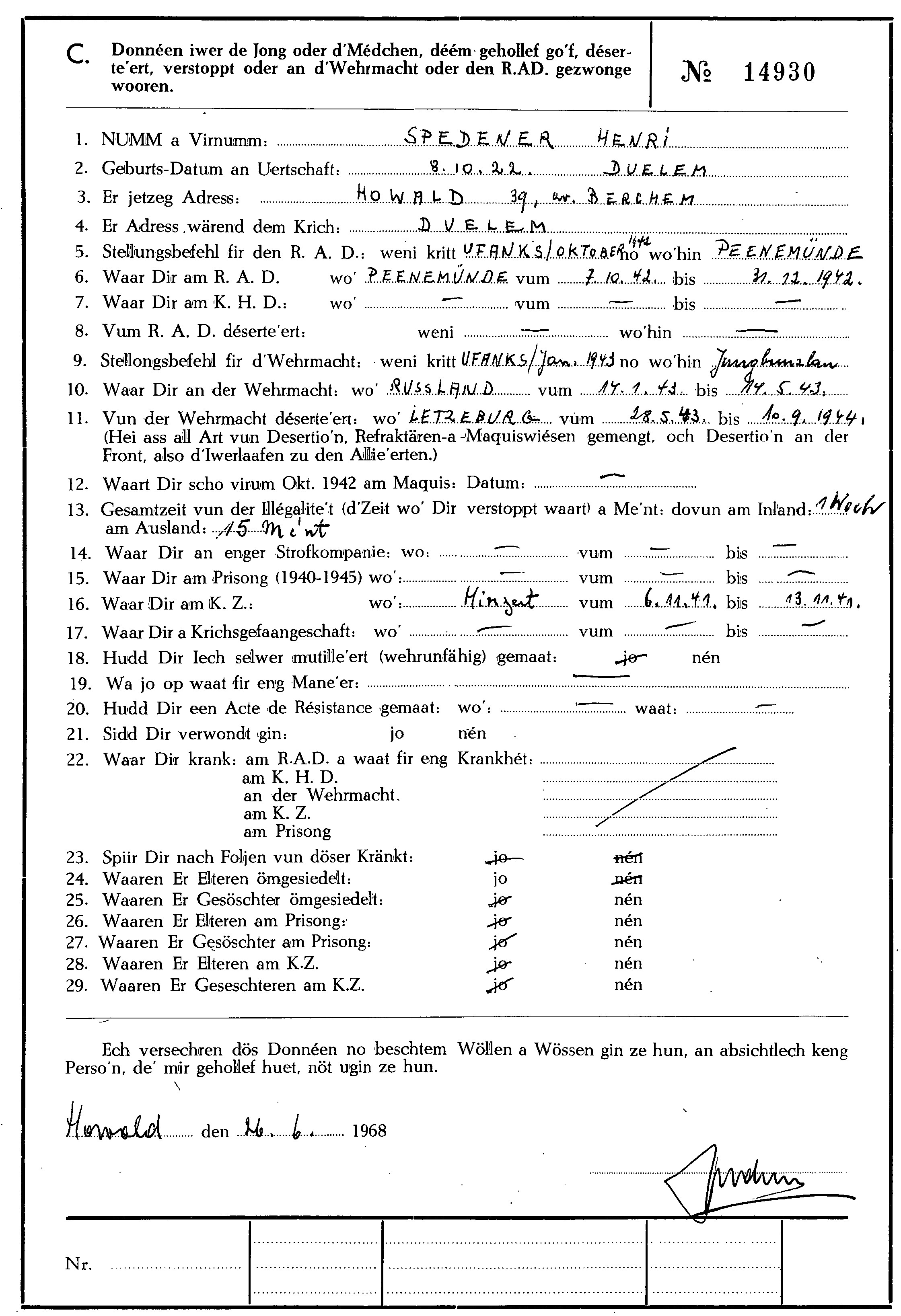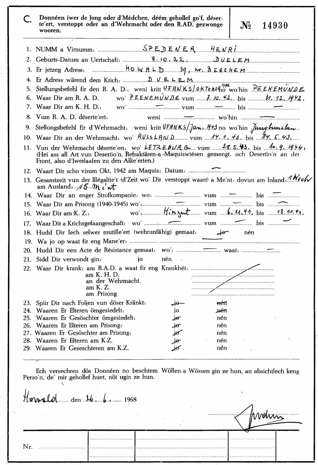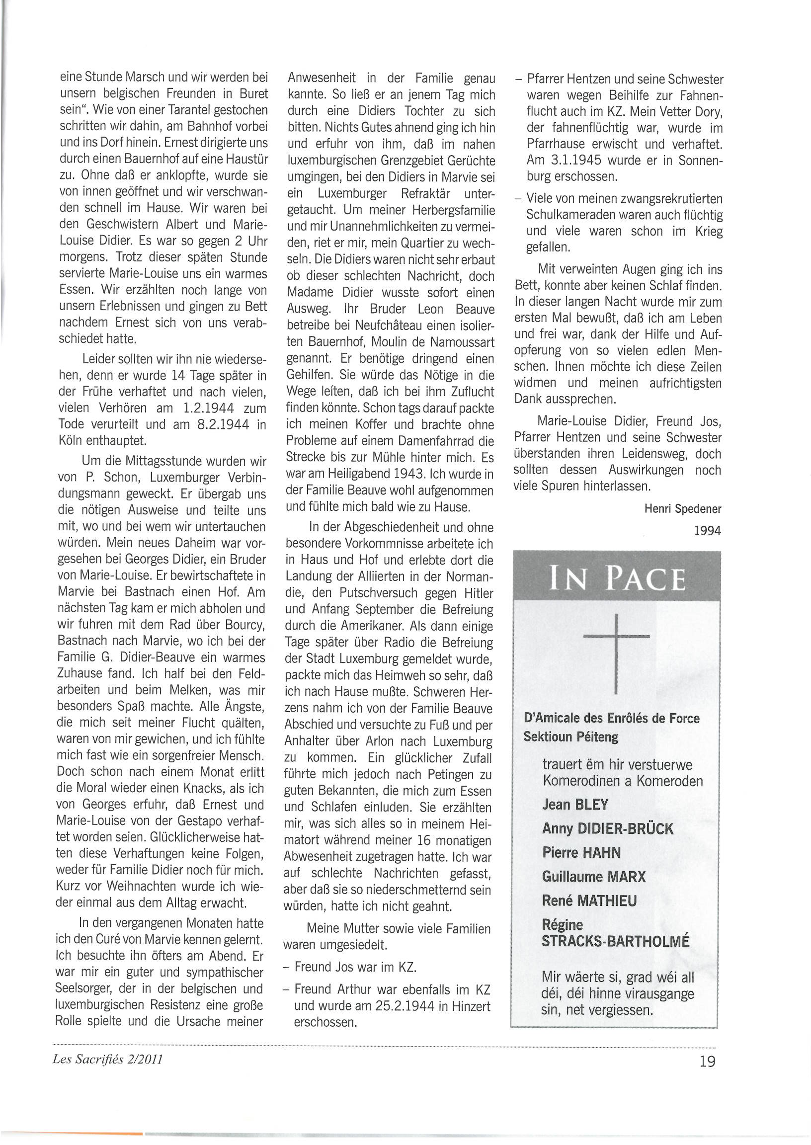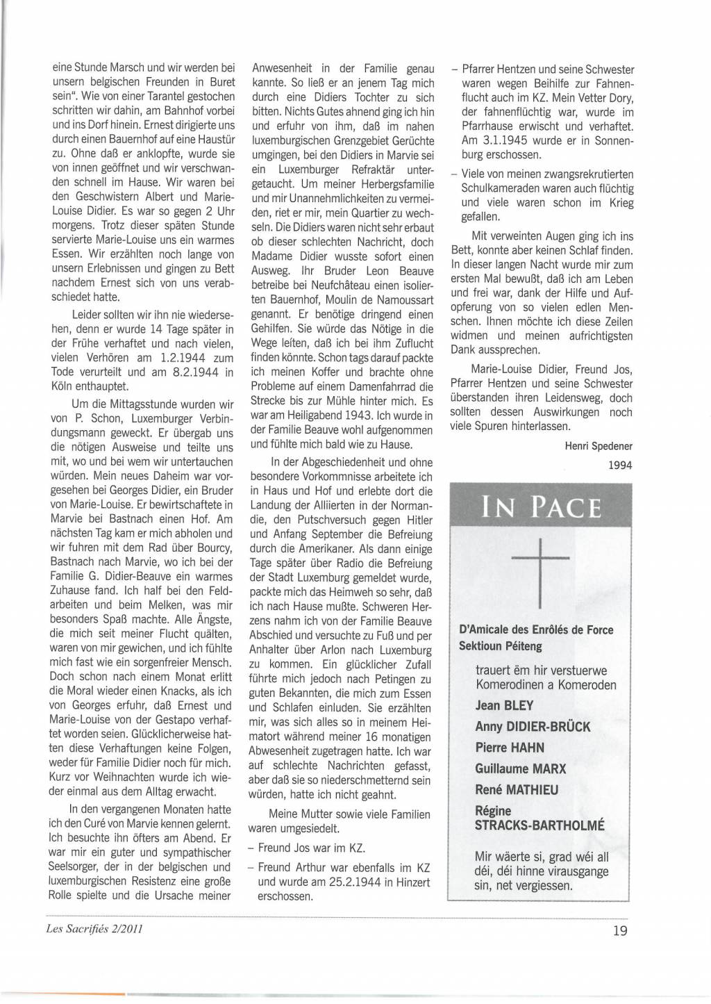 Spedener Henri 08101922 Dalheim 09071998 Luxembourg SACRIFIES