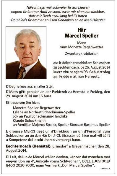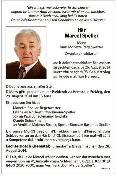 SPELLER Marcel 16091921 1.jpg Télécharger le document 2.jpg Télécharger le document 3.jpg Télécharger le document Speller_Marcel_16091921_Bech_26082014_Echternach.jpg Télécharger le document