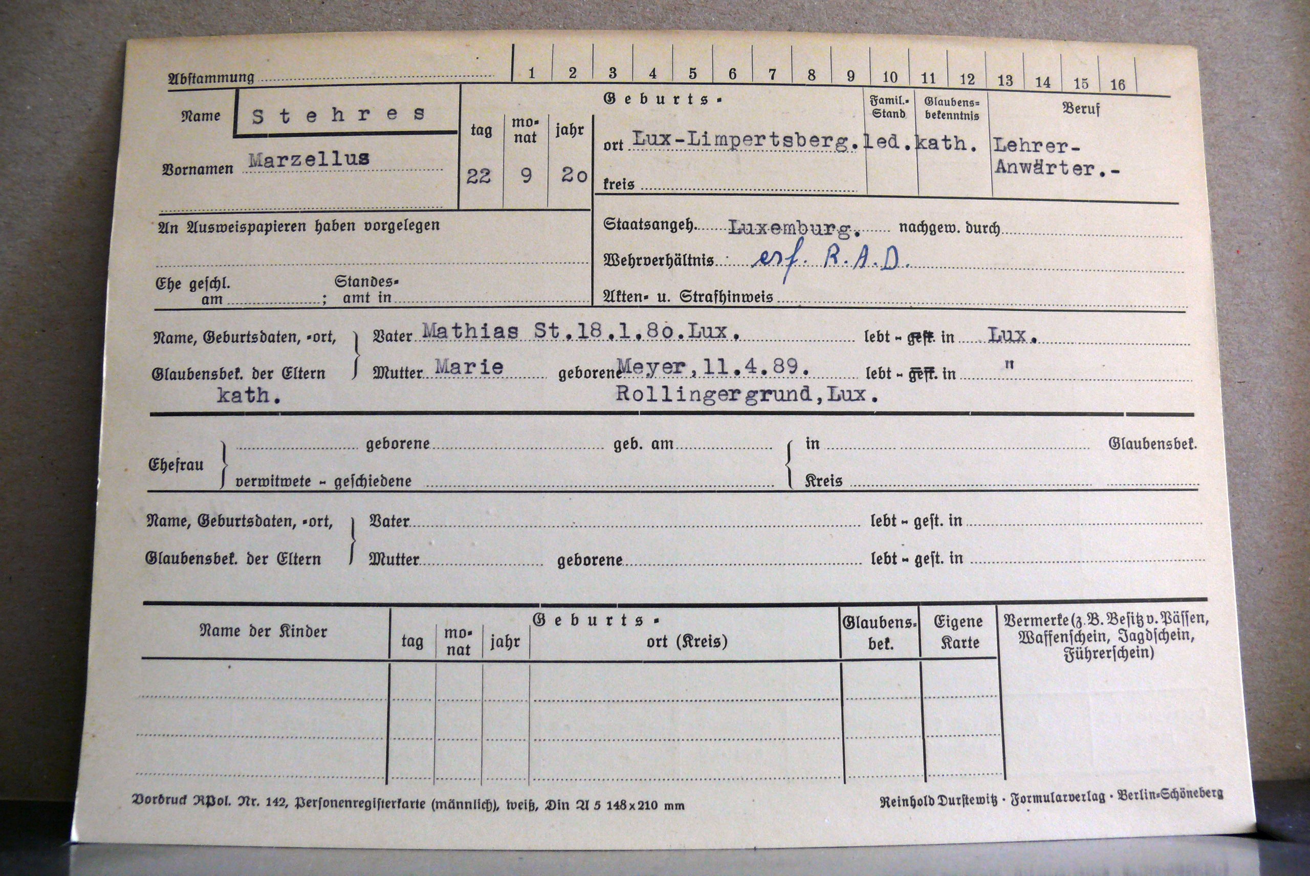 Stehres Marcel 22091920 Luxembourg STEHRES