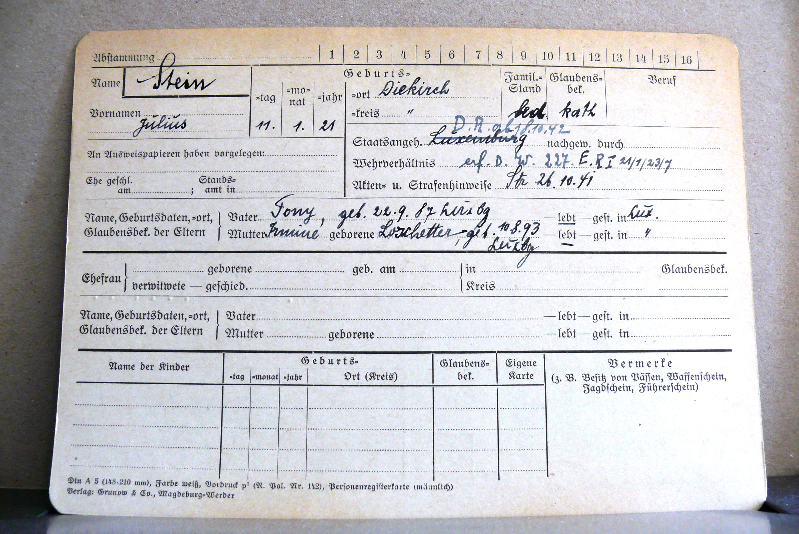 Nom, prénom, nom pendant l'occupation