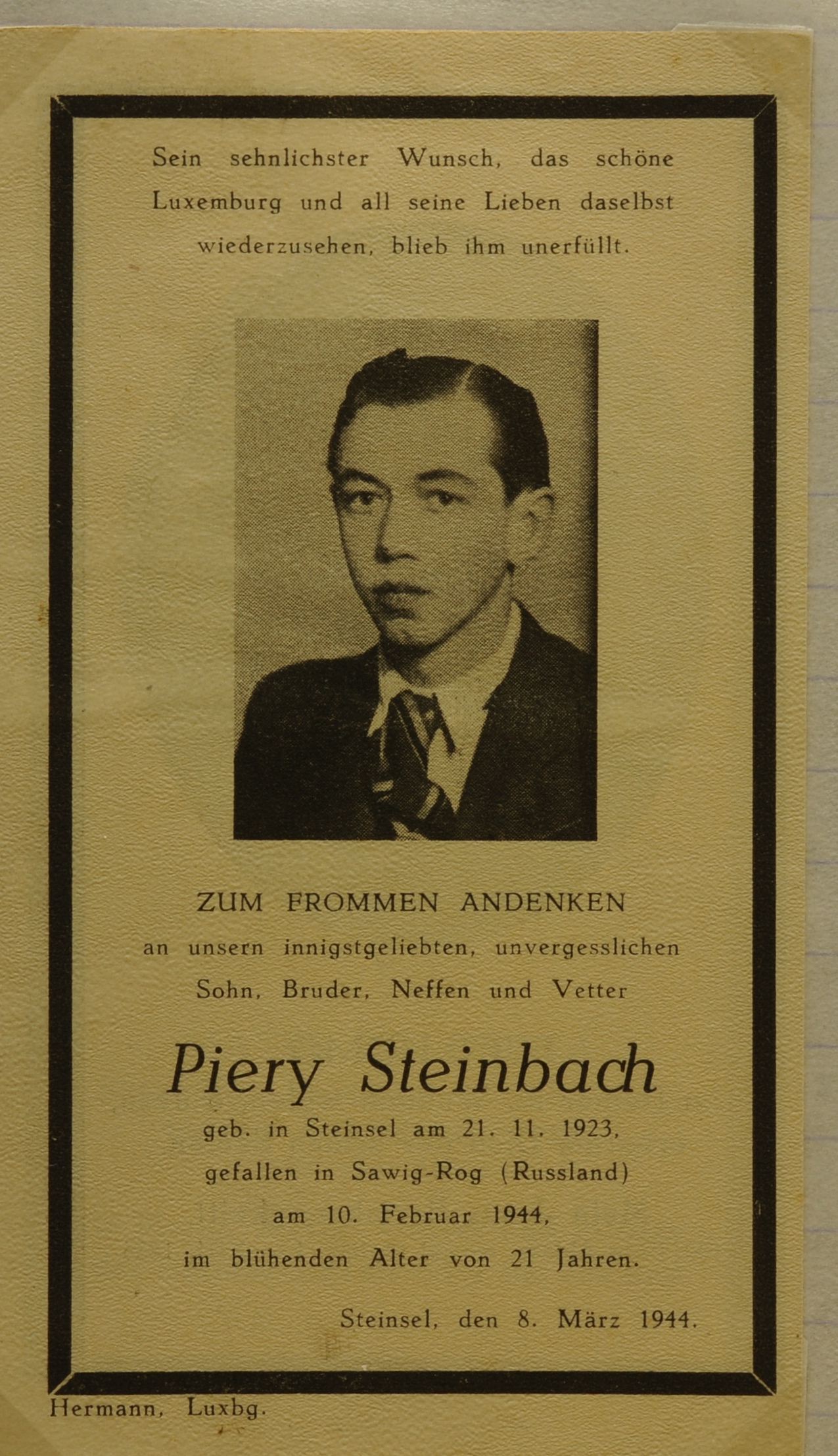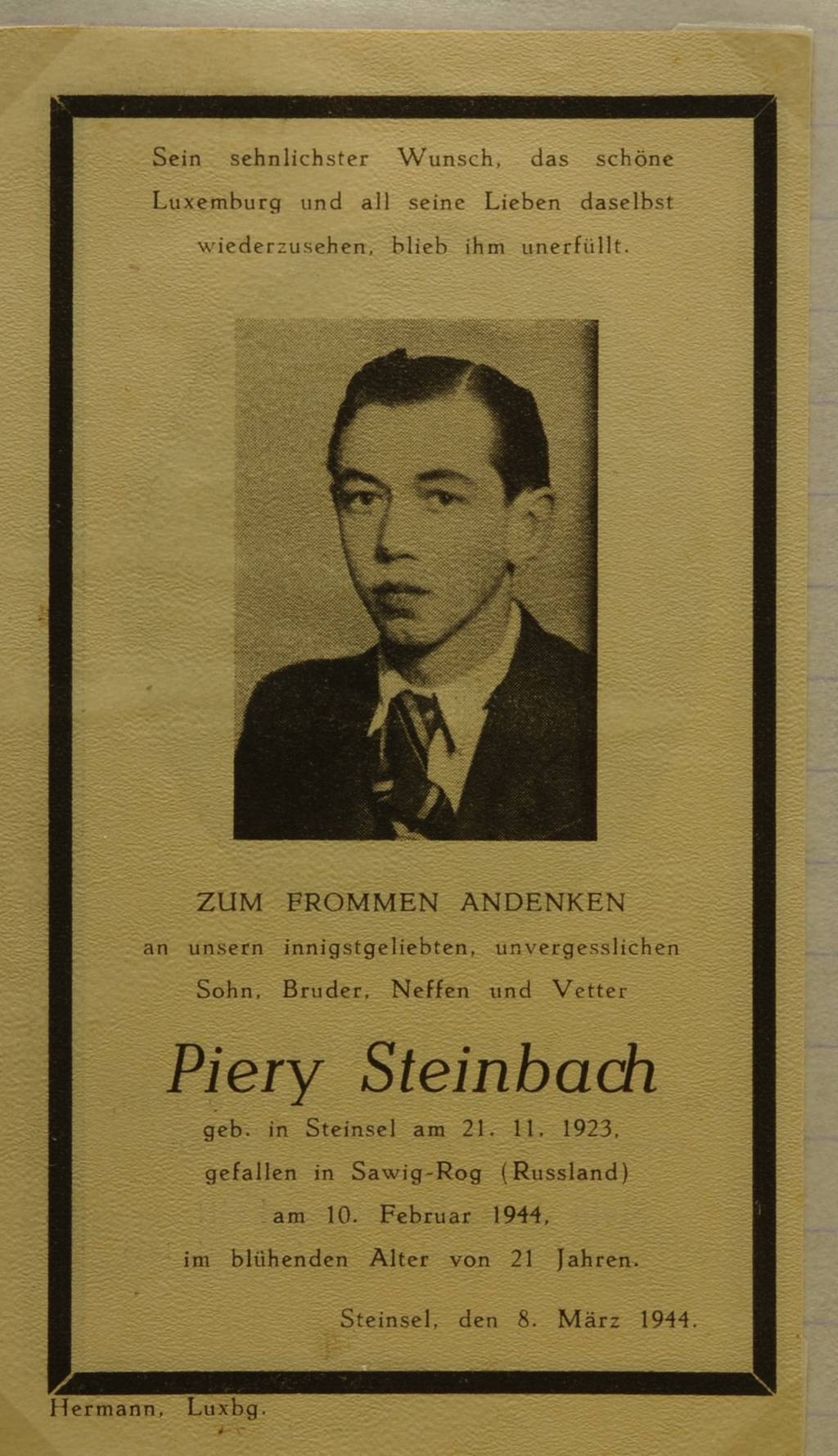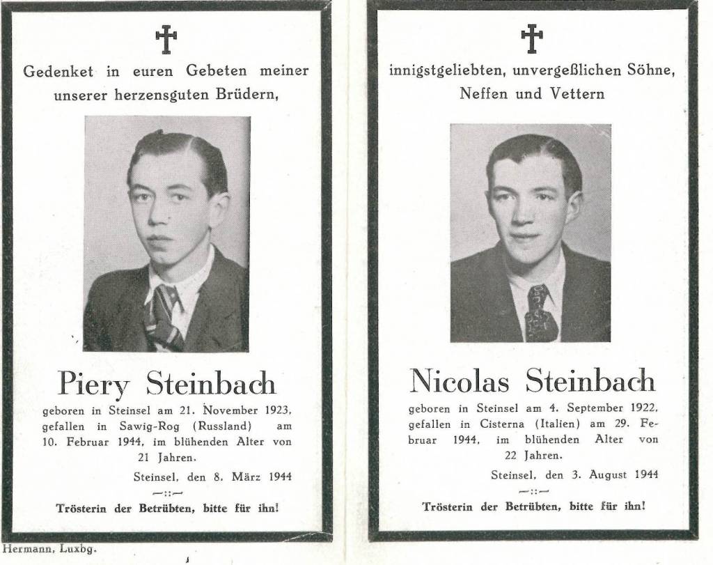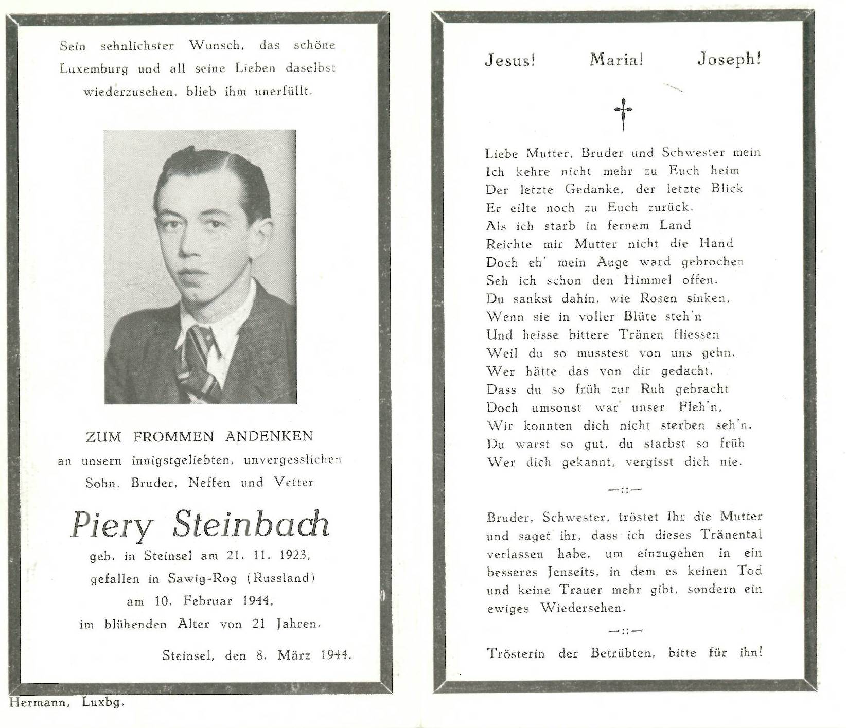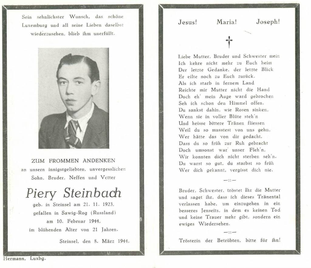 Divers Img0645.jpg Télécharger le document Steinbach Pierre STESEL Steinbach Pierre.JPG Télécharger le document Steinbach Piery.jpg Télécharger le document Steinbach_Piery_210111923_Steinsel_Sawig_Rog.jpg Télécharger le document Steinbach_Piery_21111923_Steinsel_10021944_Sawig_Rog_Russland.jpg Télécharger le document