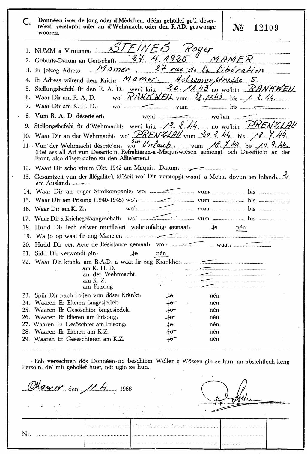 Nom, prénom, nom pendant l'occupation