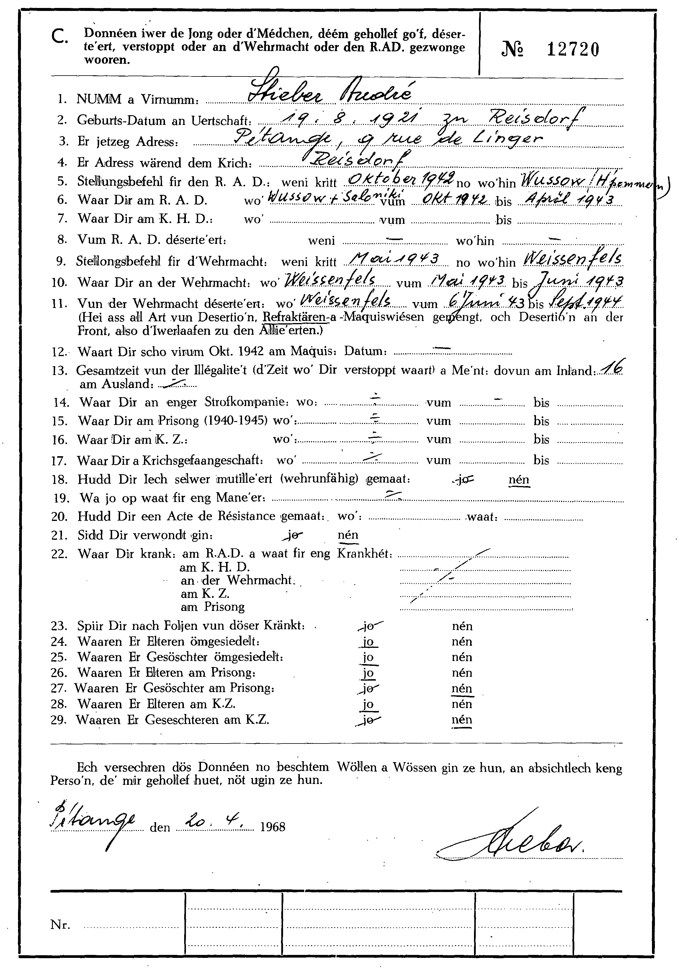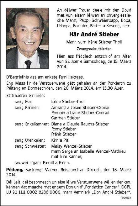 Divers Stieber André 19081921 Reisdorf.pdf Télécharger le document Stieber_Andre_19081921_Reisdorf_15032014.jpg Télécharger le document MRN 1.jpg Télécharger le document 2.jpg Télécharger le document 3.jpg Télécharger le document