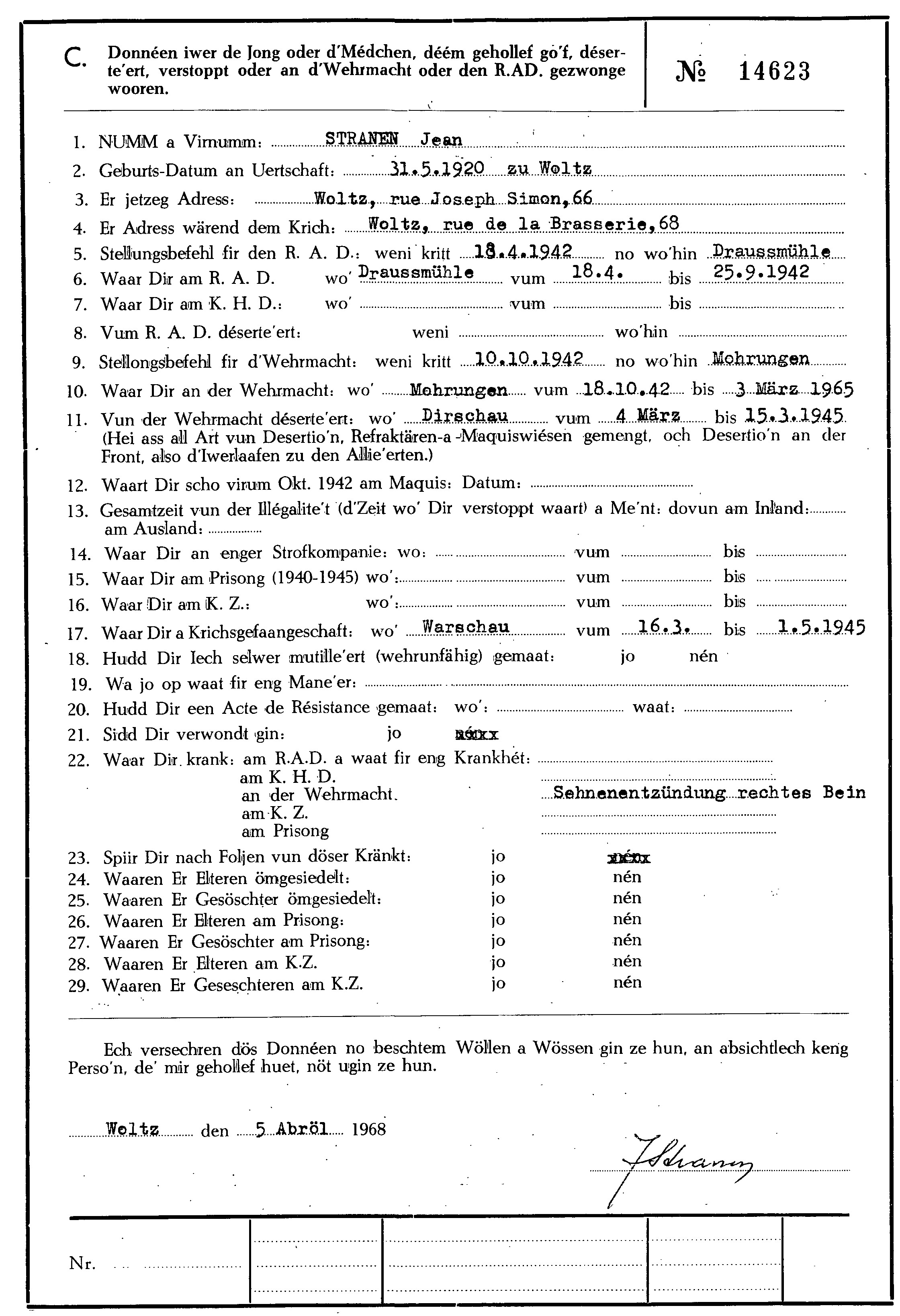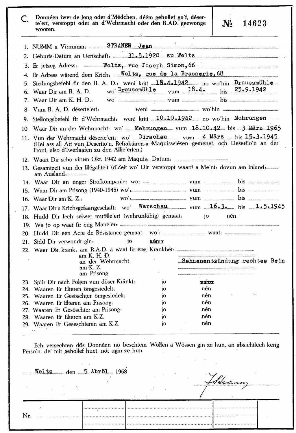 Nom, prénom, nom pendant l'occupation