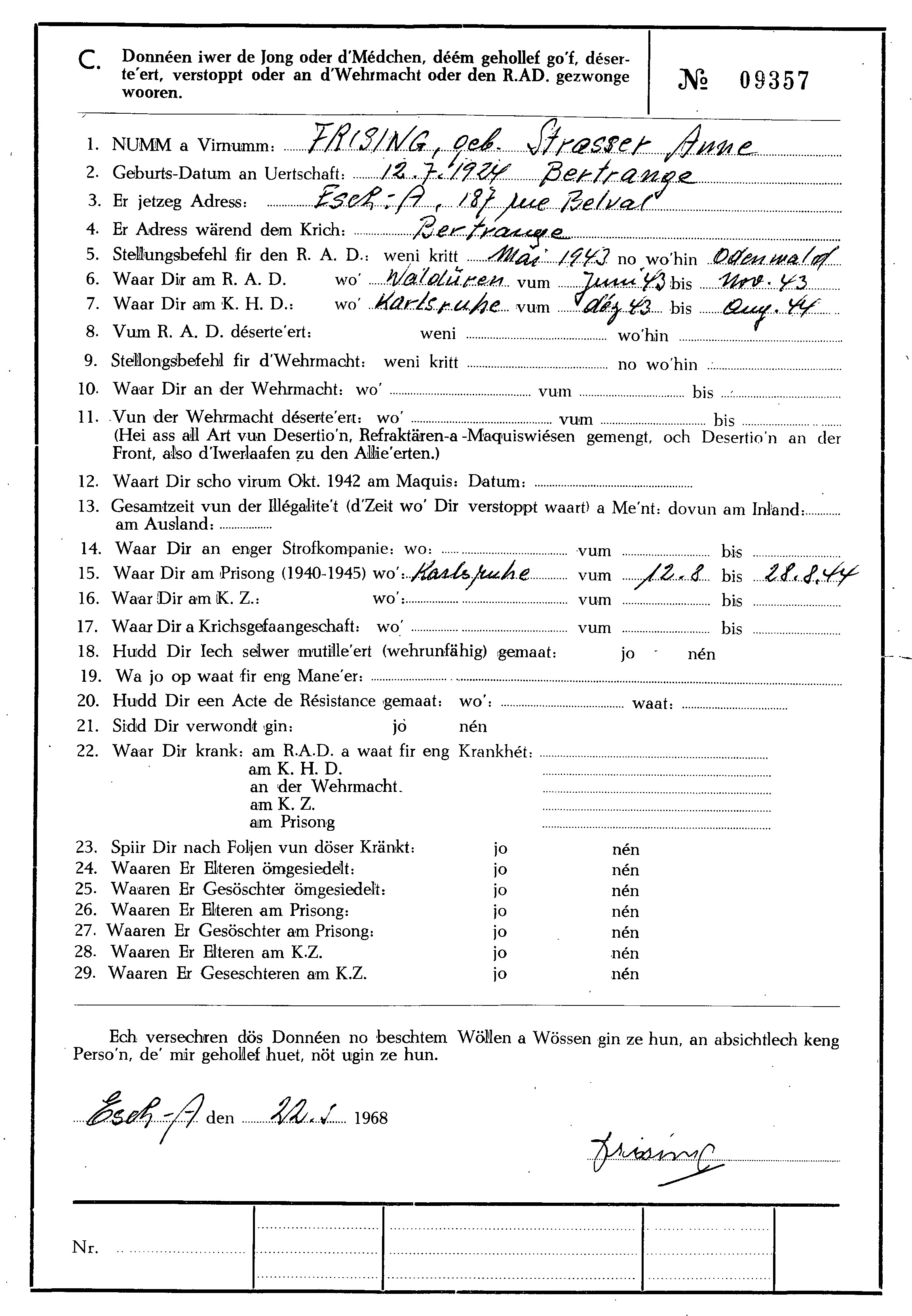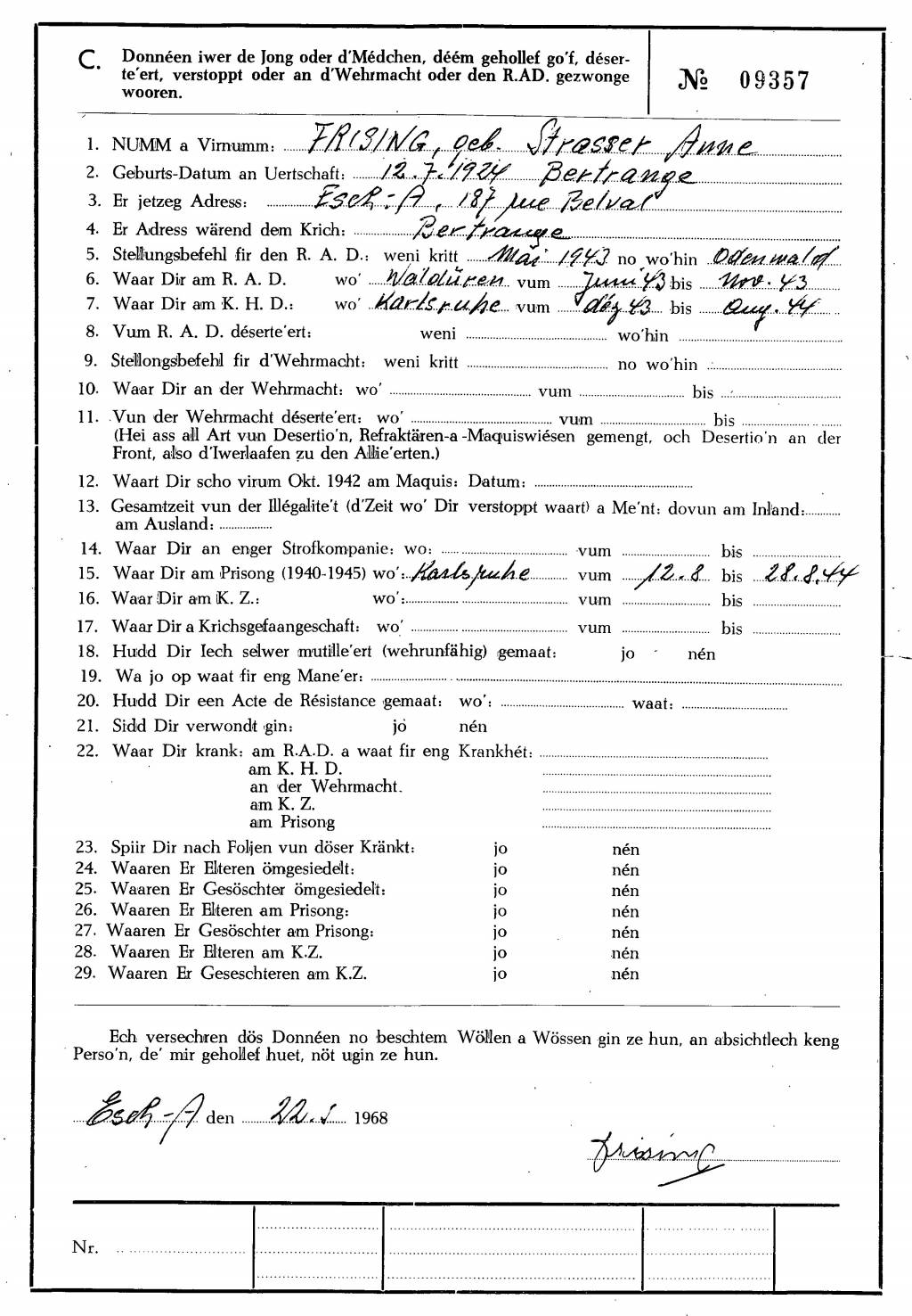 STRASSER epouse de FRISING Anne 12071924 Bertrange 1.jpg Télécharger le document 2.jpg Télécharger le document 3.jpg Télécharger le document