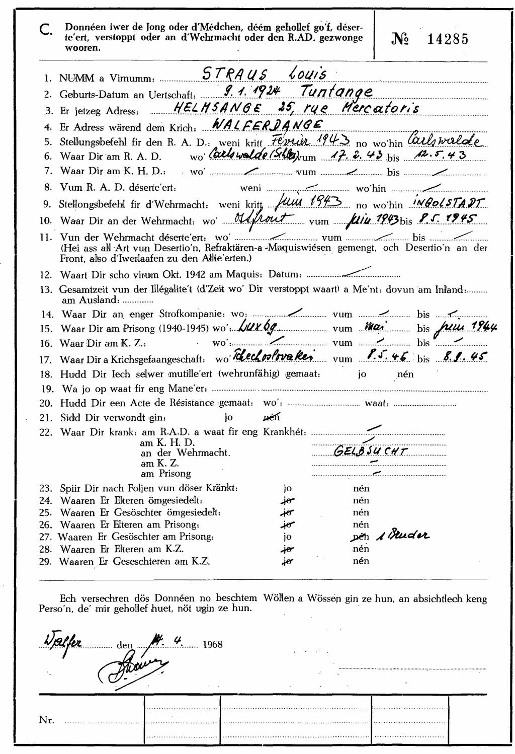 Nom, prénom, nom pendant l'occupation
