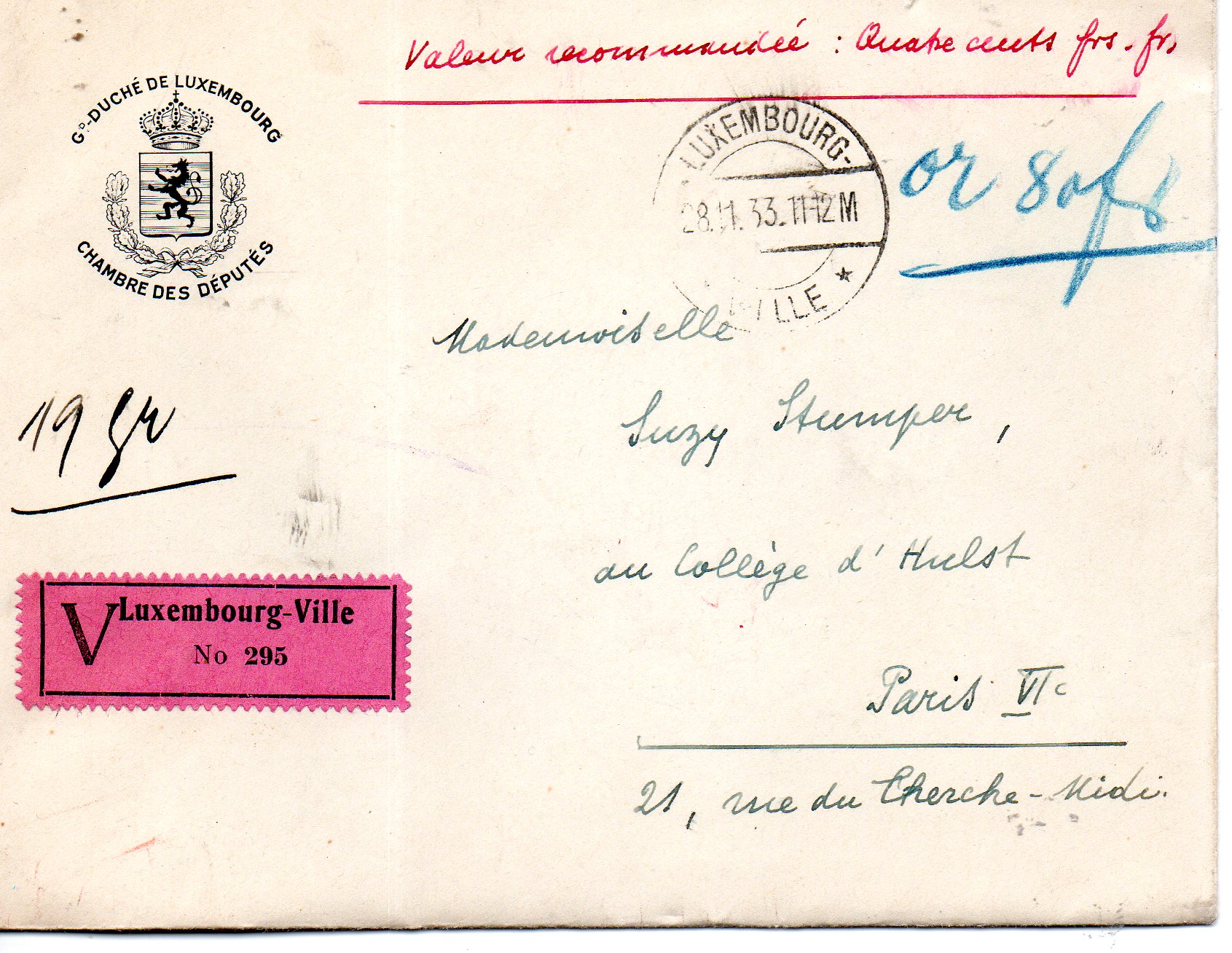 1933_28_11_Lette_du_père_de_Suzy_avec_enveloppe_Chambre_des_Députés_lettre_pour_Suzy_Stumper_Paris_Archive_HOLLERICH_2018