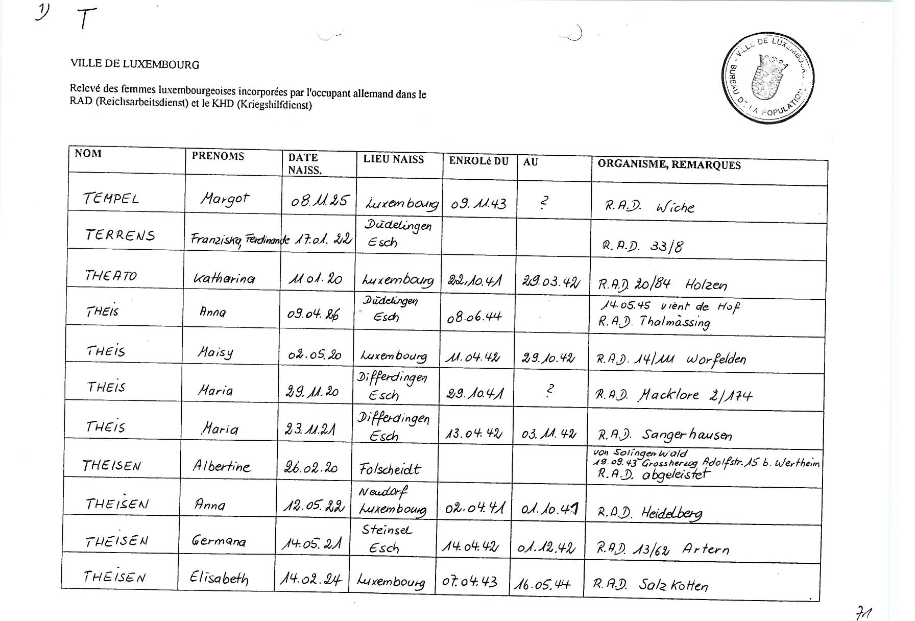 Nom, prénom, nom pendant l'occupation