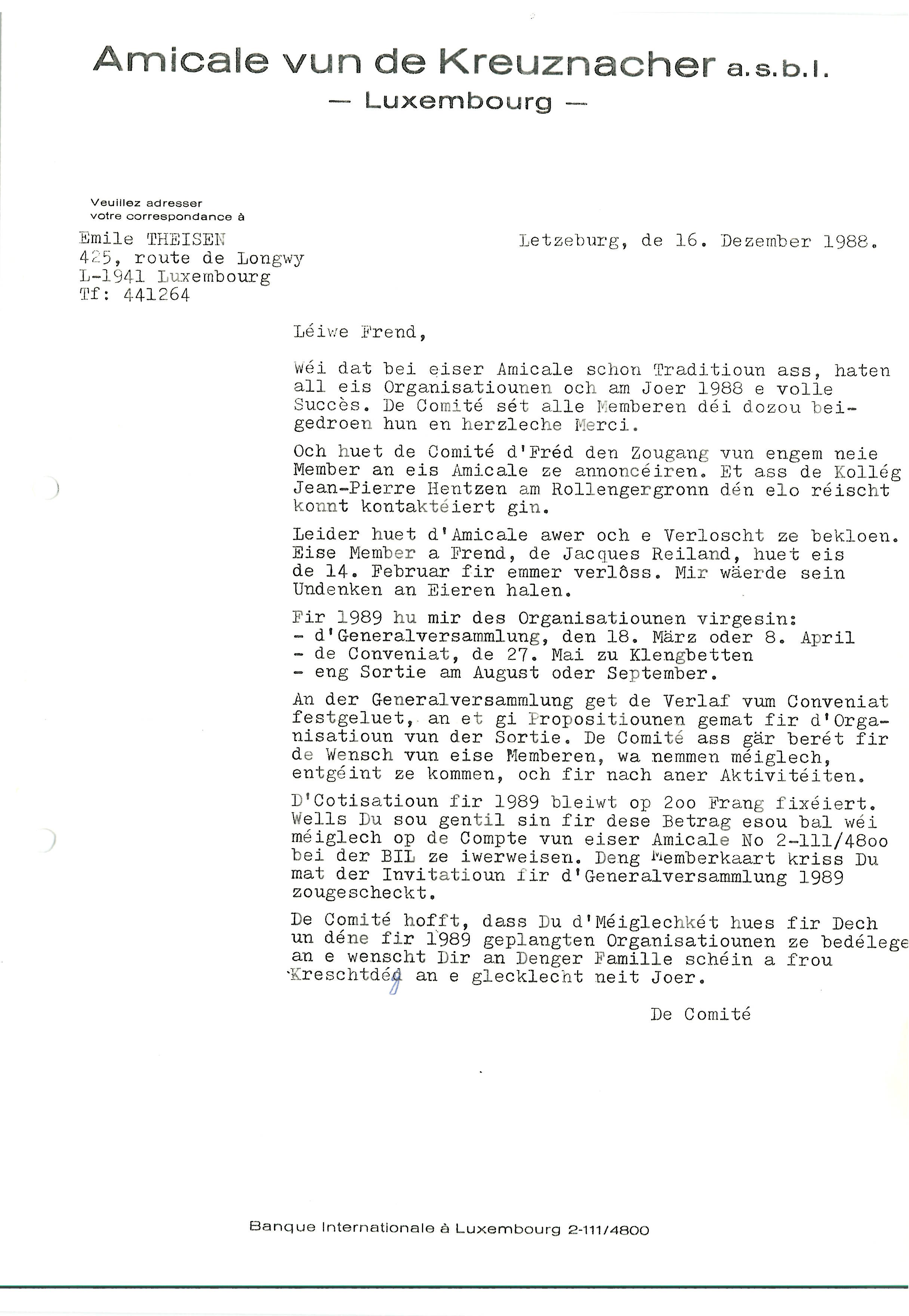 Amicale vun de Kreuznacher Asbl THEISEN Emile