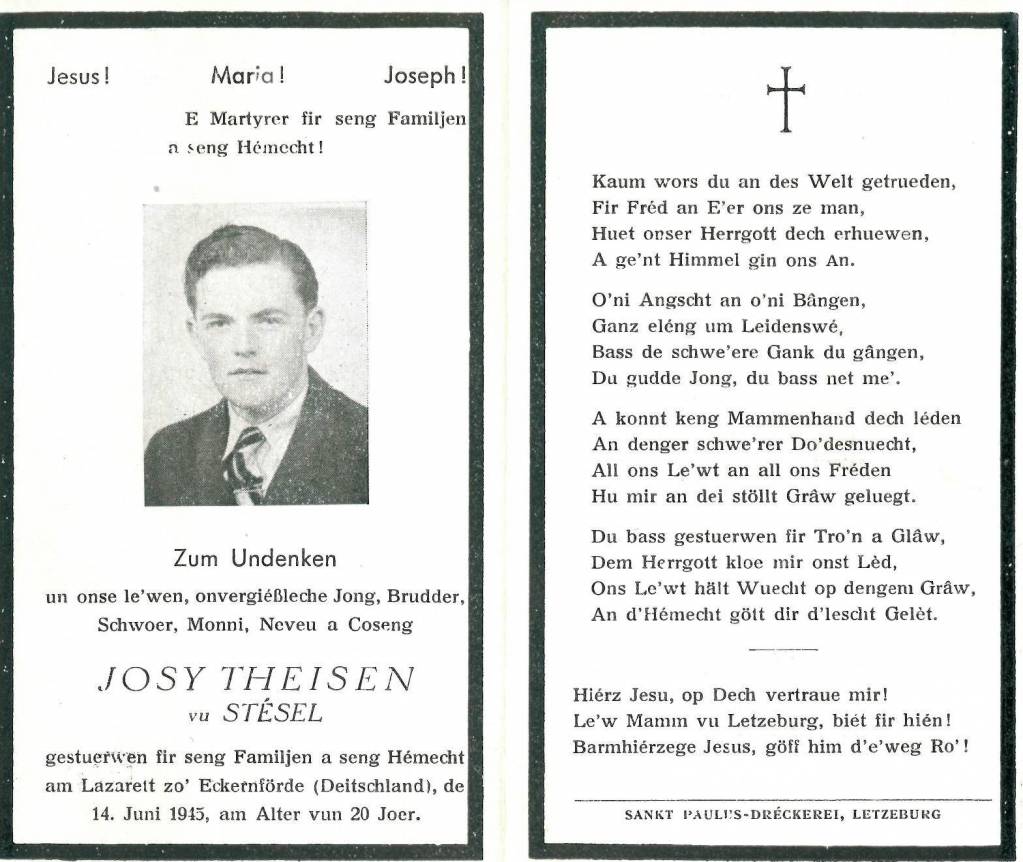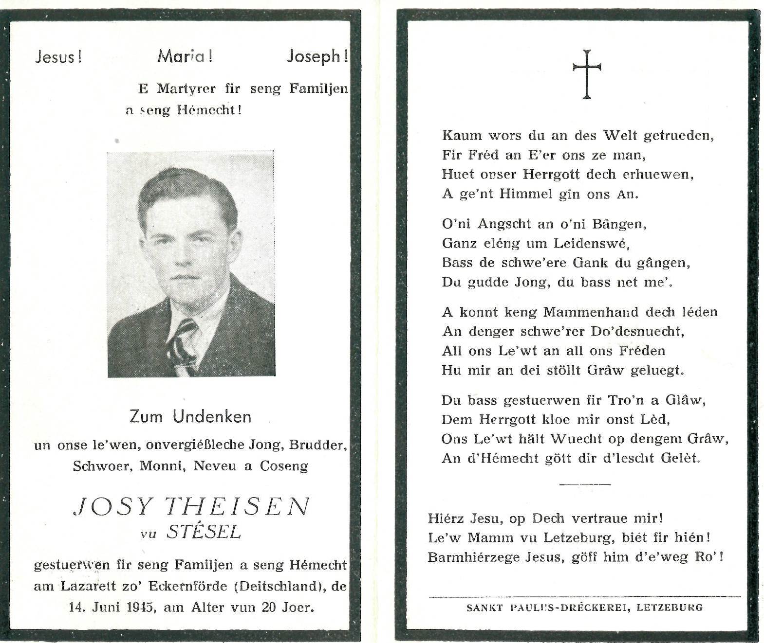 Divers_Theisen_Josy 29.jpg Télécharger le document Theisen_Josy_Steinsel_14061945_Eckernförde_D_20_ans.jpg Télécharger le document Theisen Joseph STESEL Theisen Joseph.JPG Télécharger le document Theisen Joseph1.jpg Télécharger le document