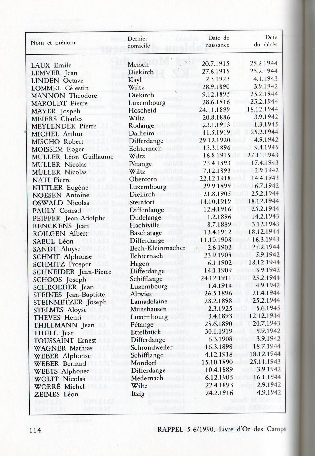 Nom, prénom, nom pendant l'occupation