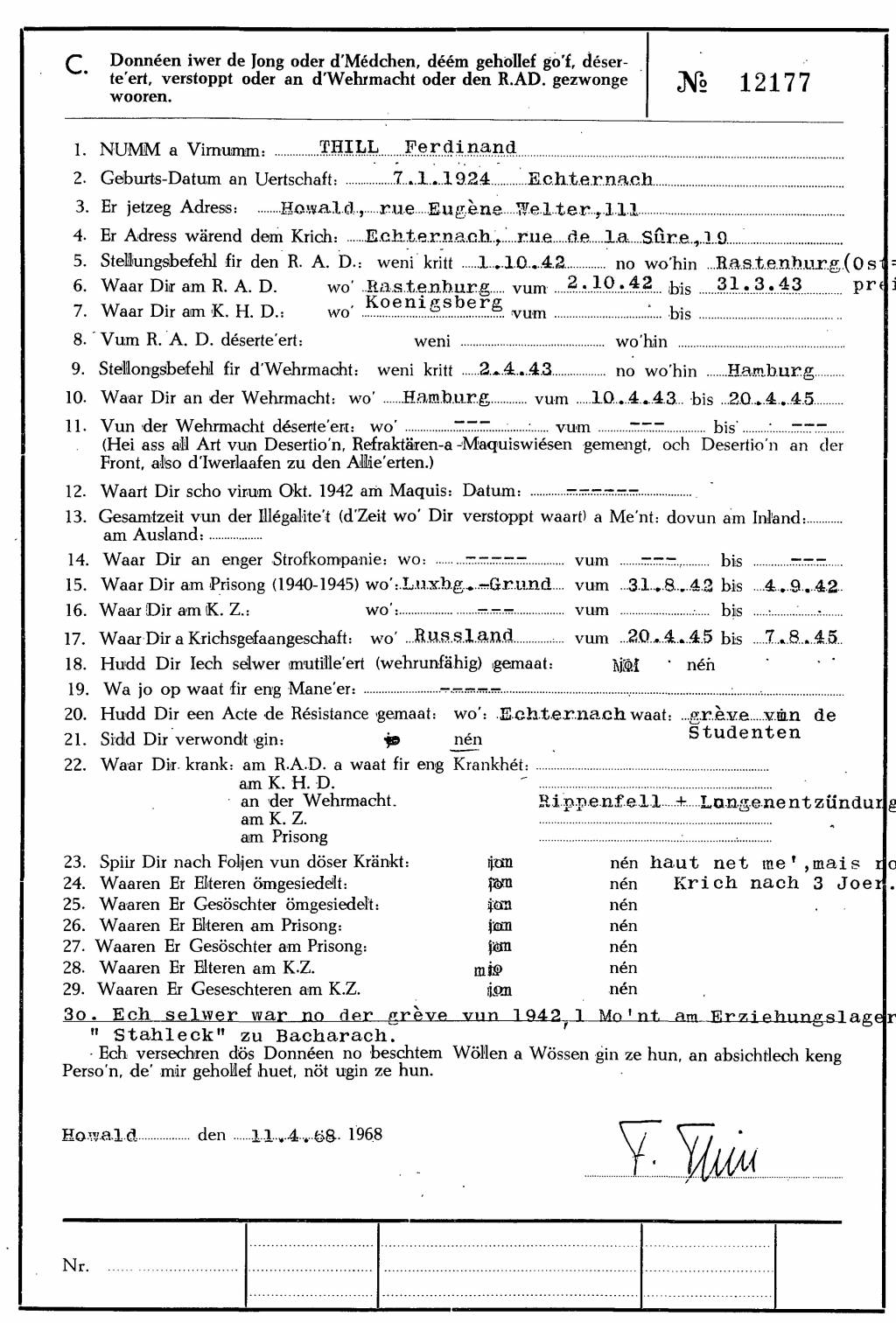 Nom, prénom, nom pendant l'occupation