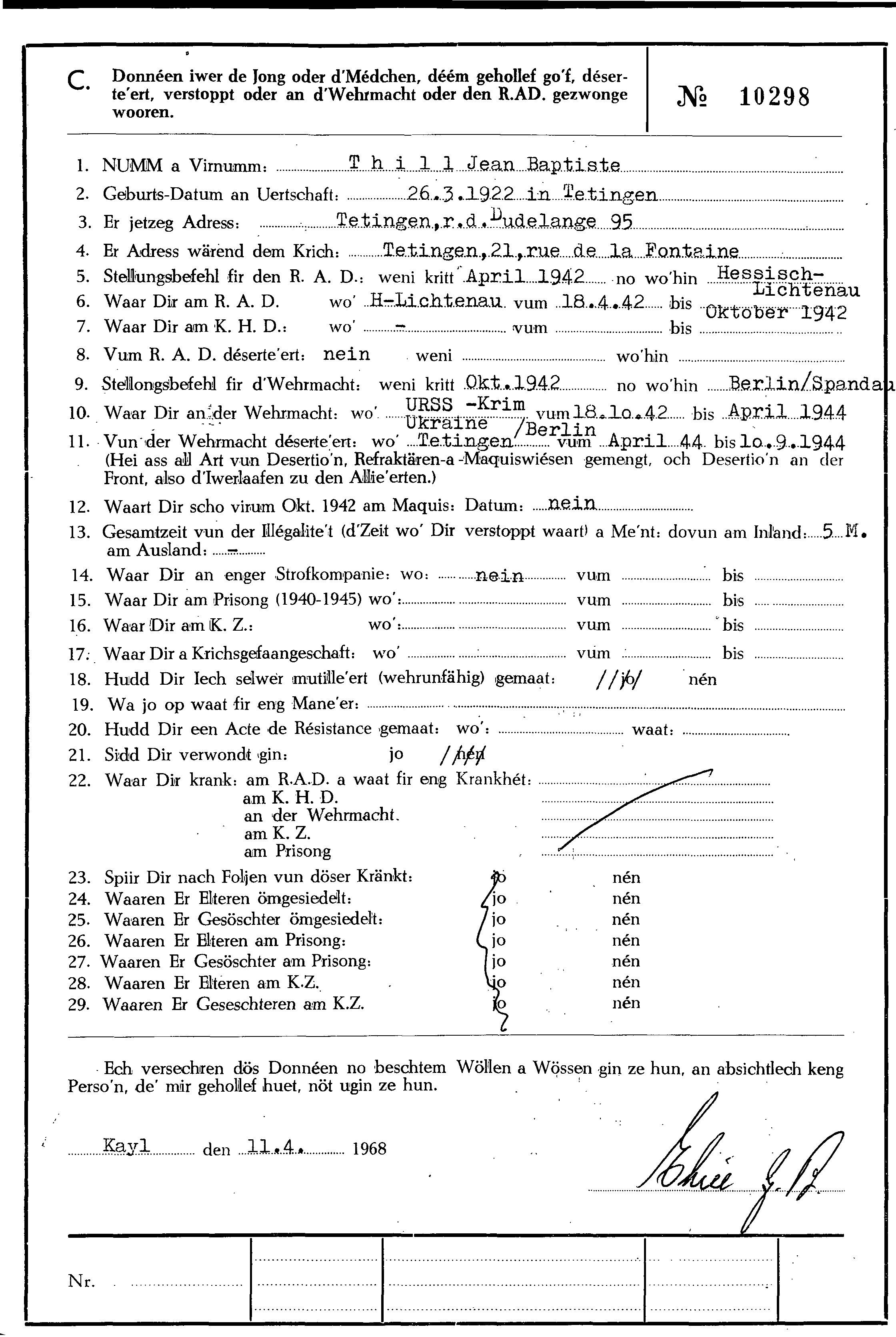 Nom, prénom, nom pendant l'occupation