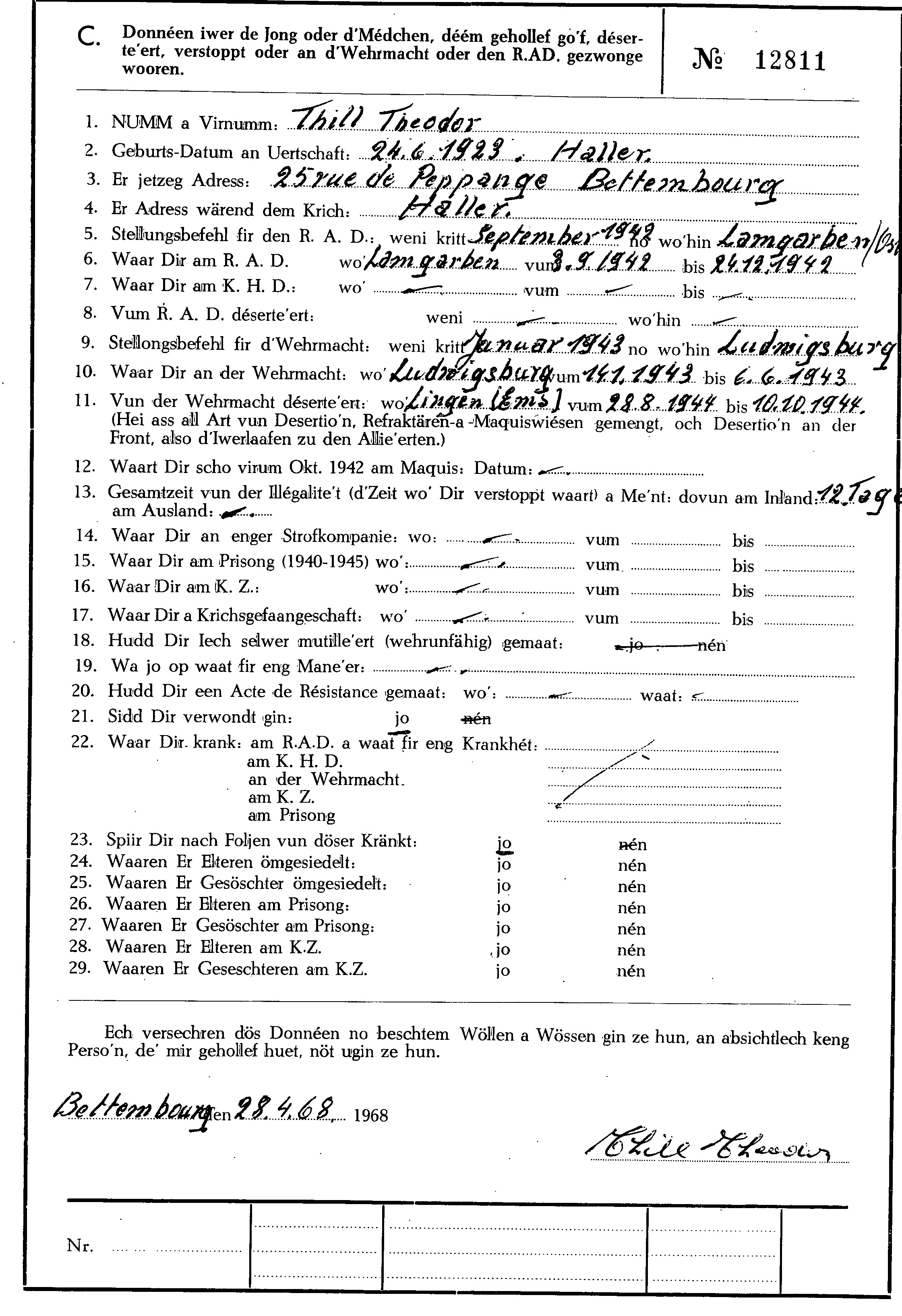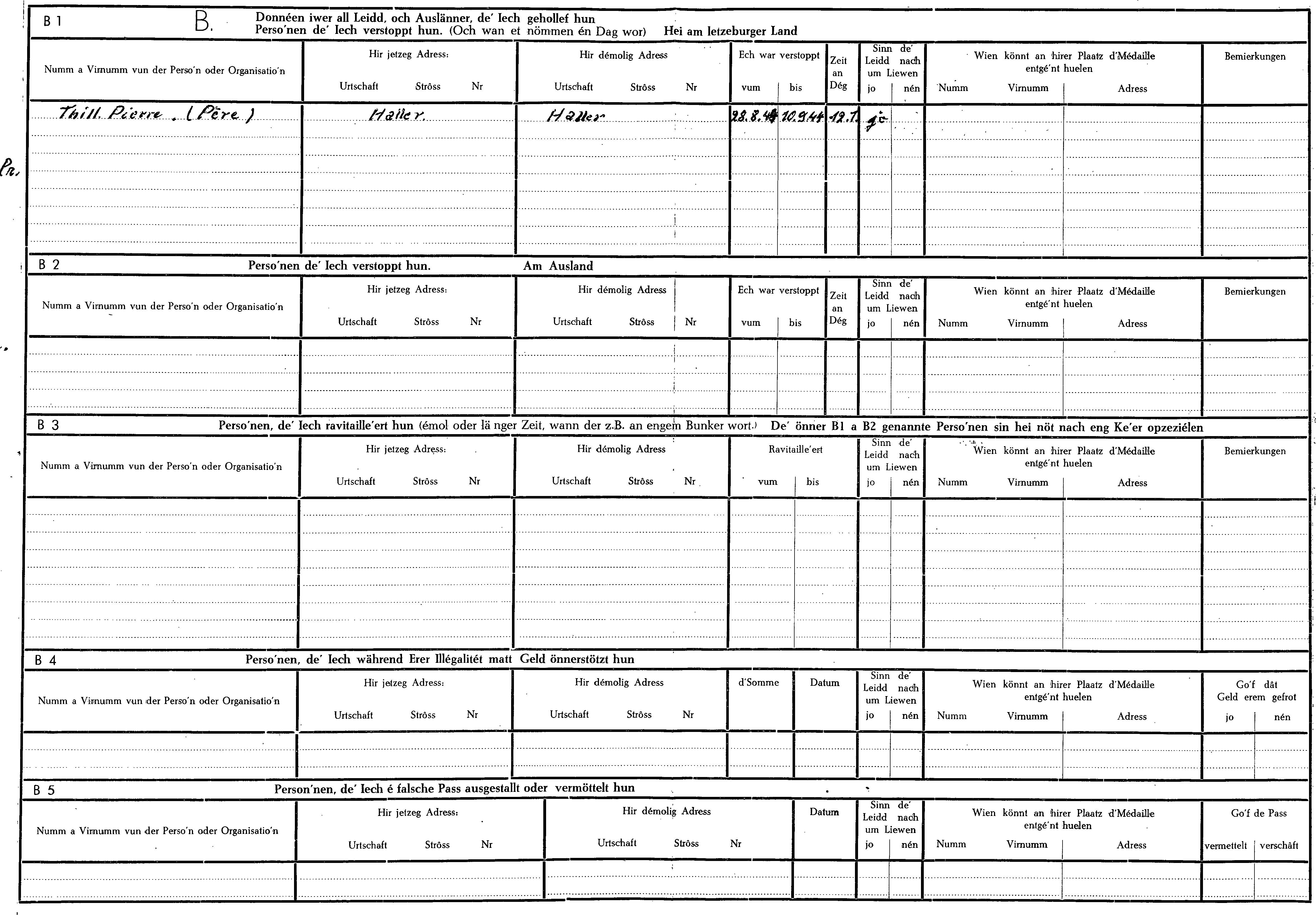 Nom, prénom, nom pendant l'occupation