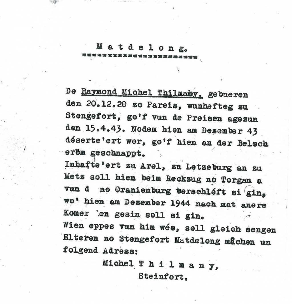Divers Thilmany Raymond 09121920 Paris STEINFORT.JPG Télécharger le document Thilmany Raymond Michel 20121920 Paris POW Liste EDF HOLLERICH.jpg Télécharger le document