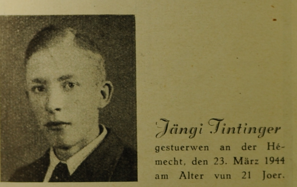 Divers_Tintinger_Jean Img2413_3.jpg Télécharger le document Tintinger_Jean_23031944_21_ans.jpg Télécharger le document Tintinger Jean STESEL Tintinger Jängi.jpg Télécharger le document Tintinger jean.JPG Télécharger le document