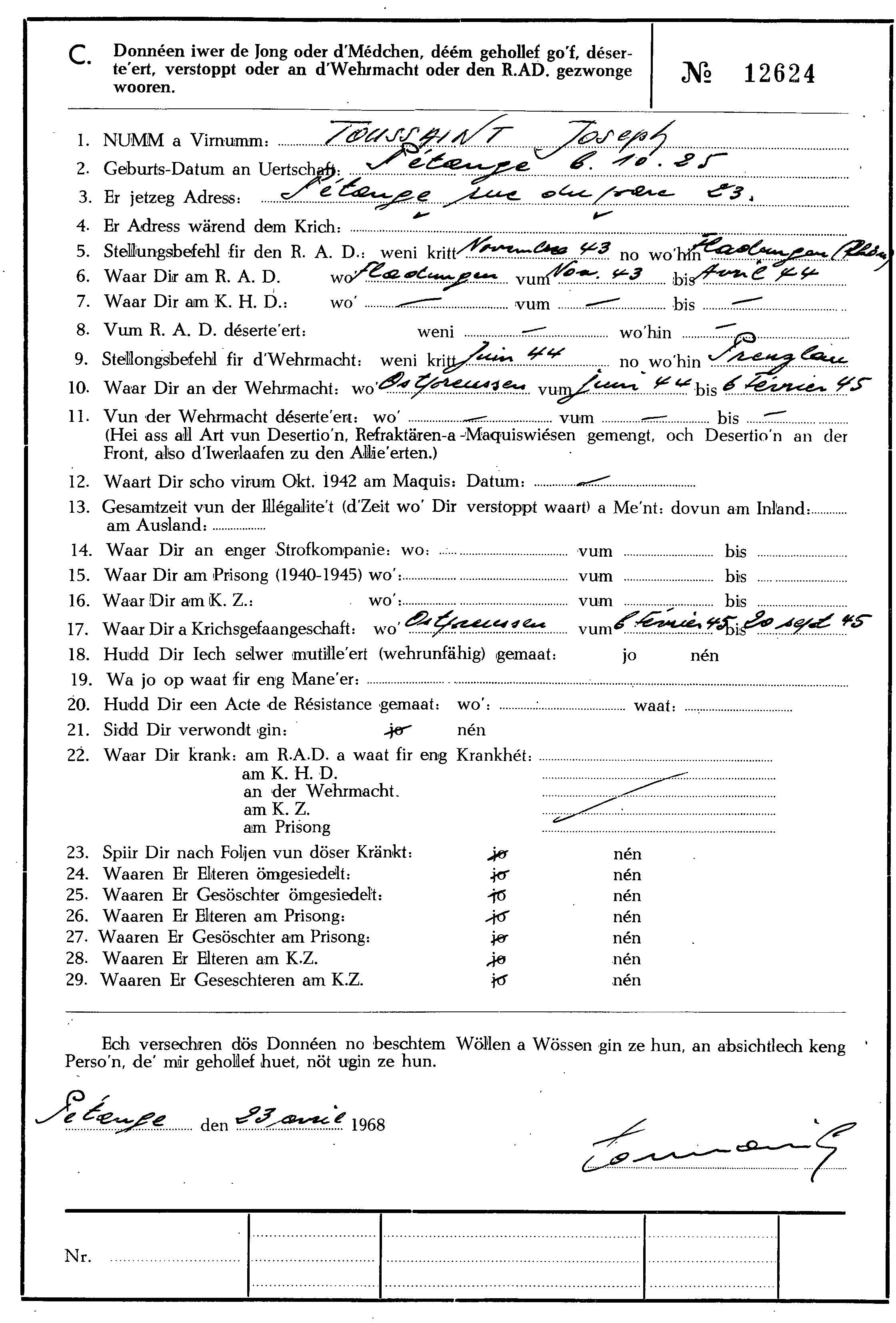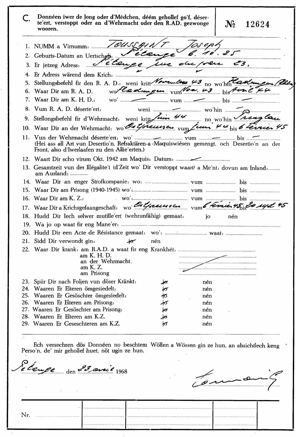 Nom, prénom, nom pendant l'occupation