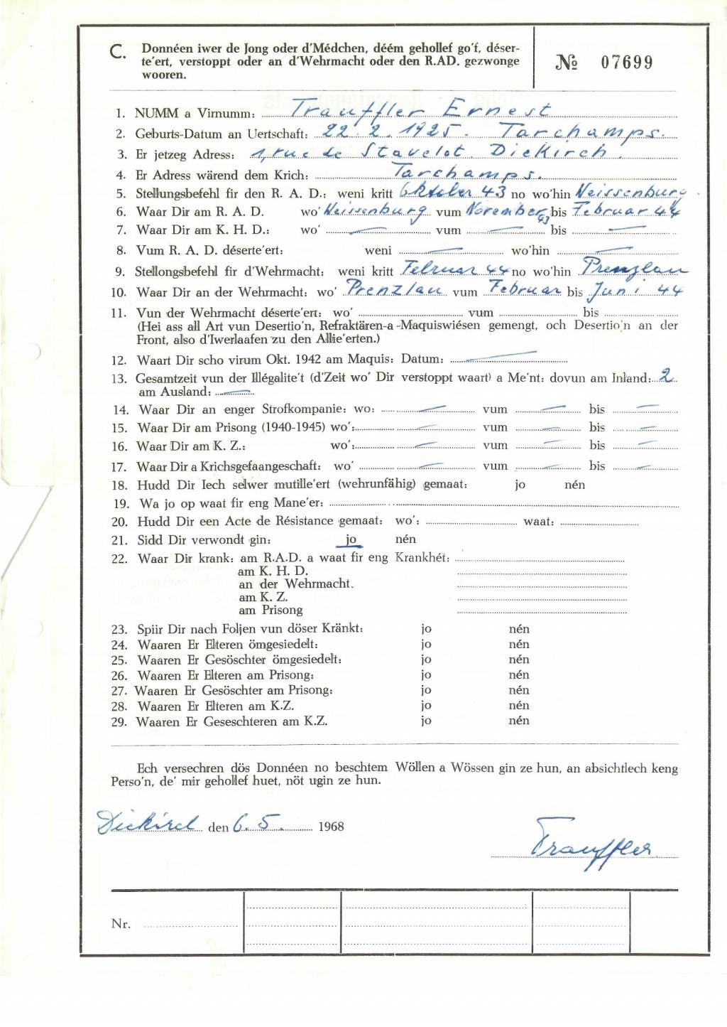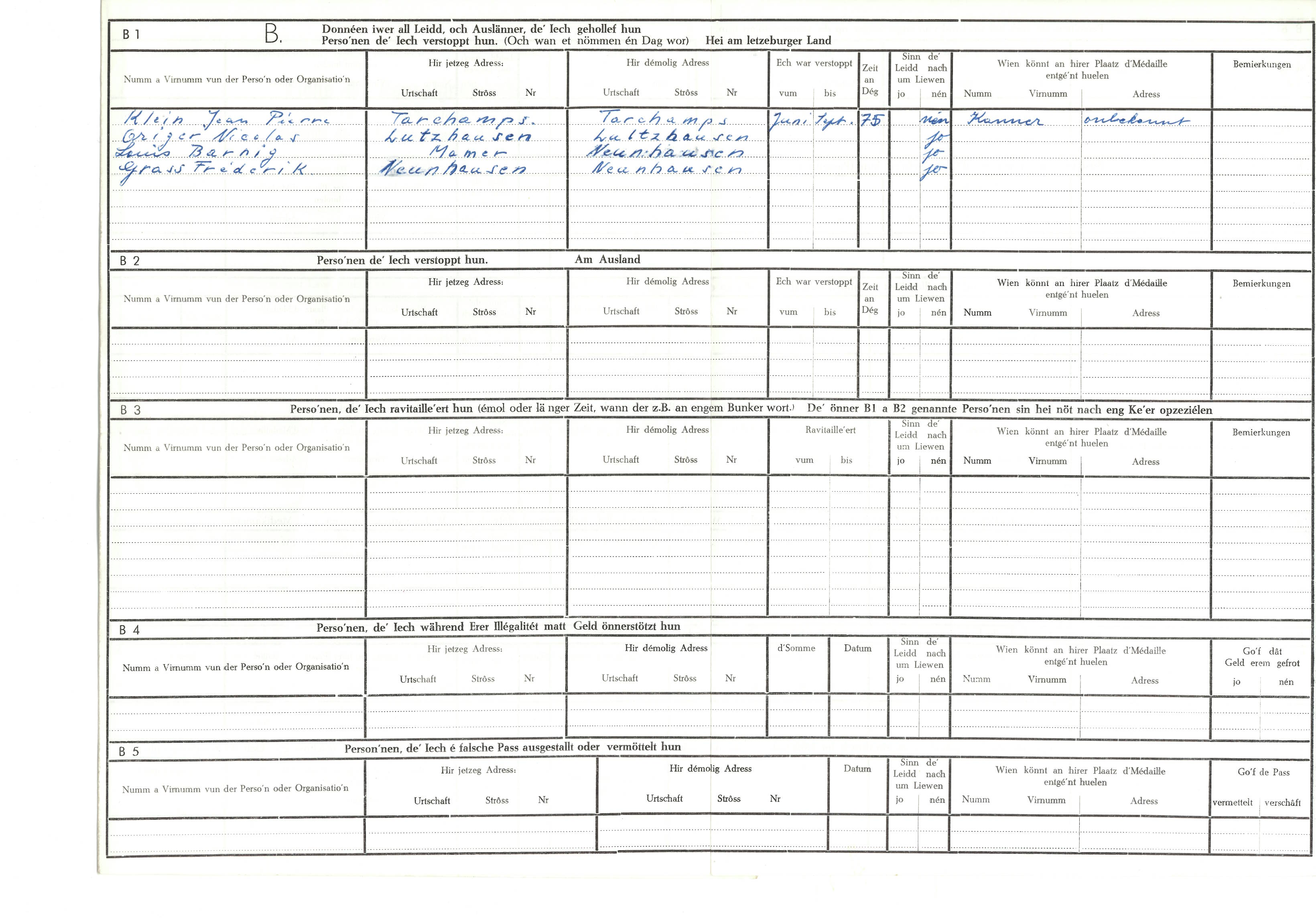 Nom, prénom, nom pendant l'occupation