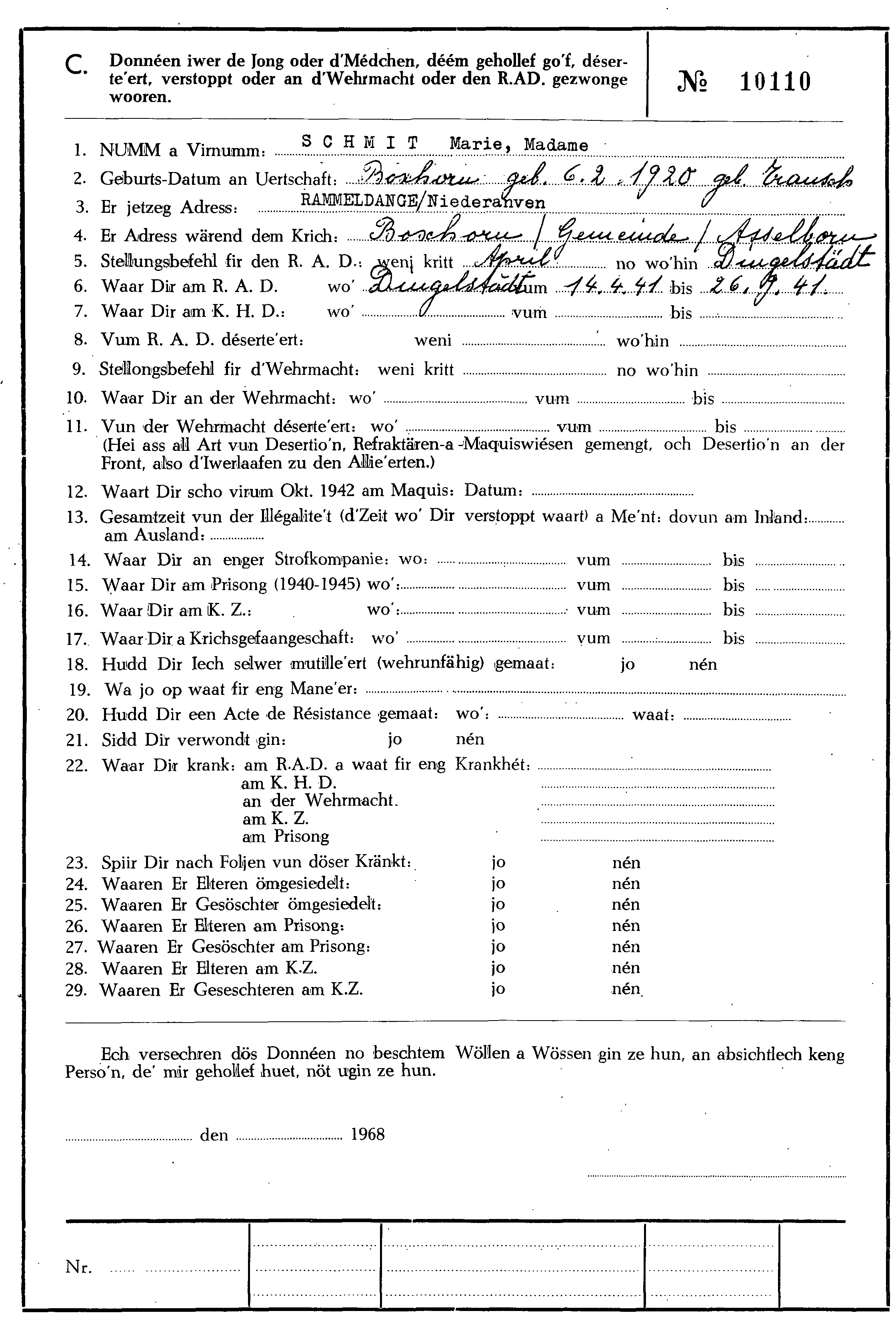 Trausch épouse Schmit Marie