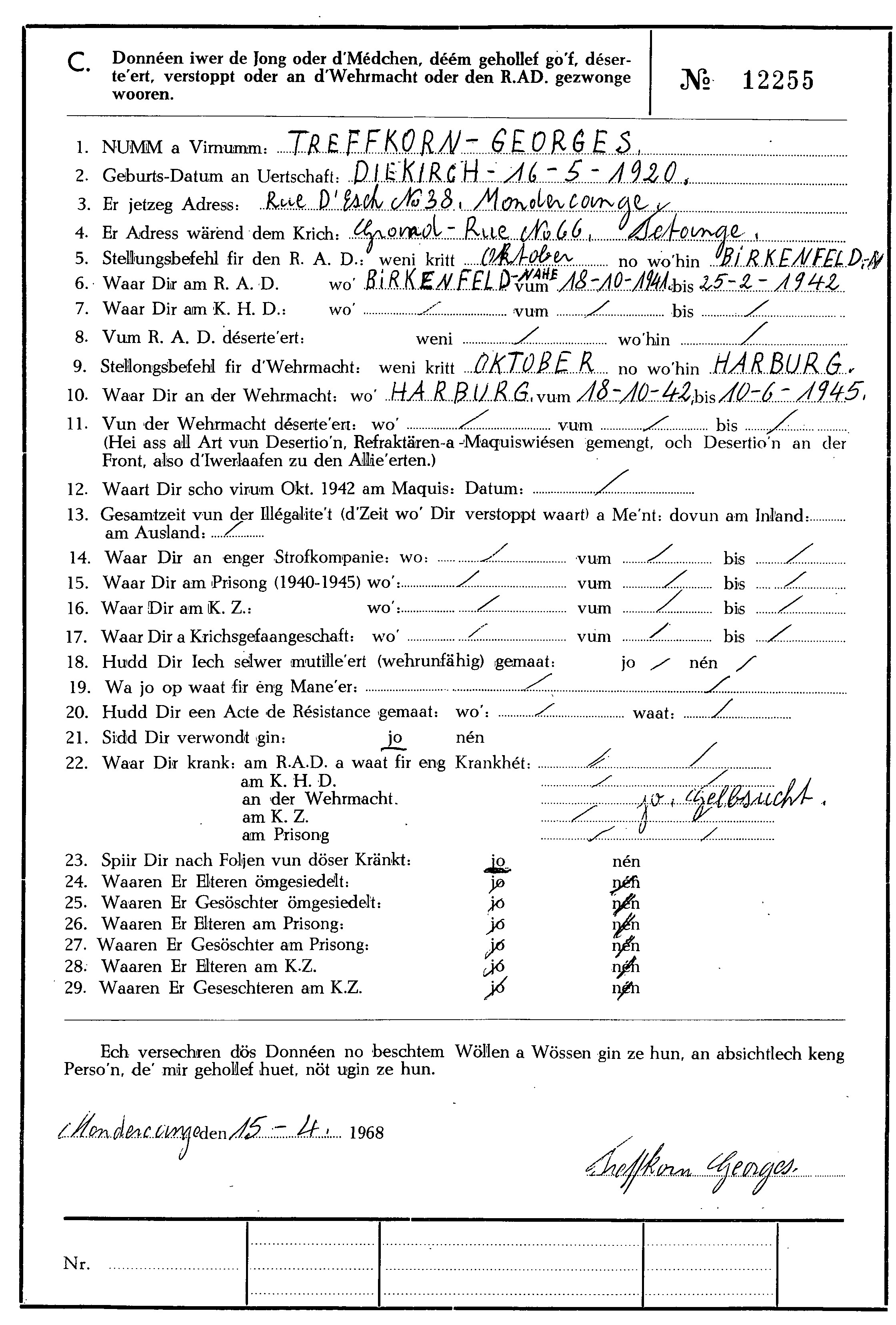 Nom, prénom, nom pendant l'occupation