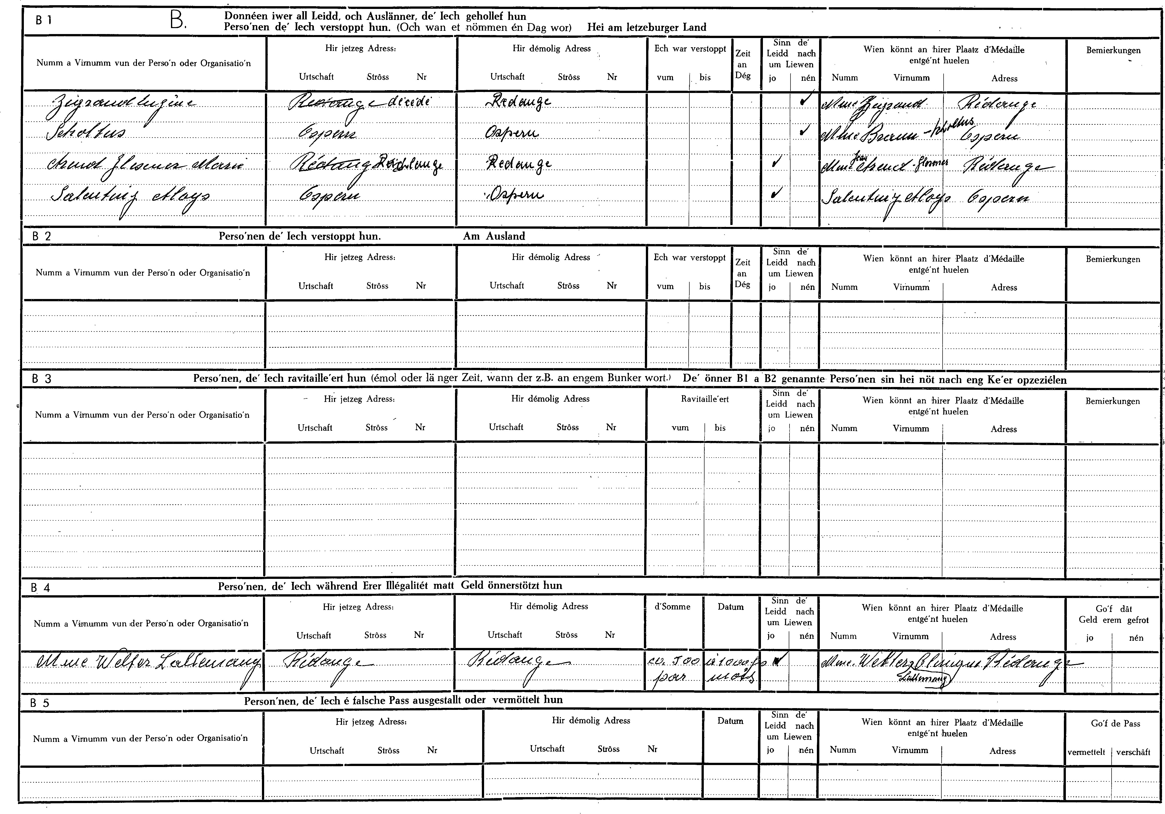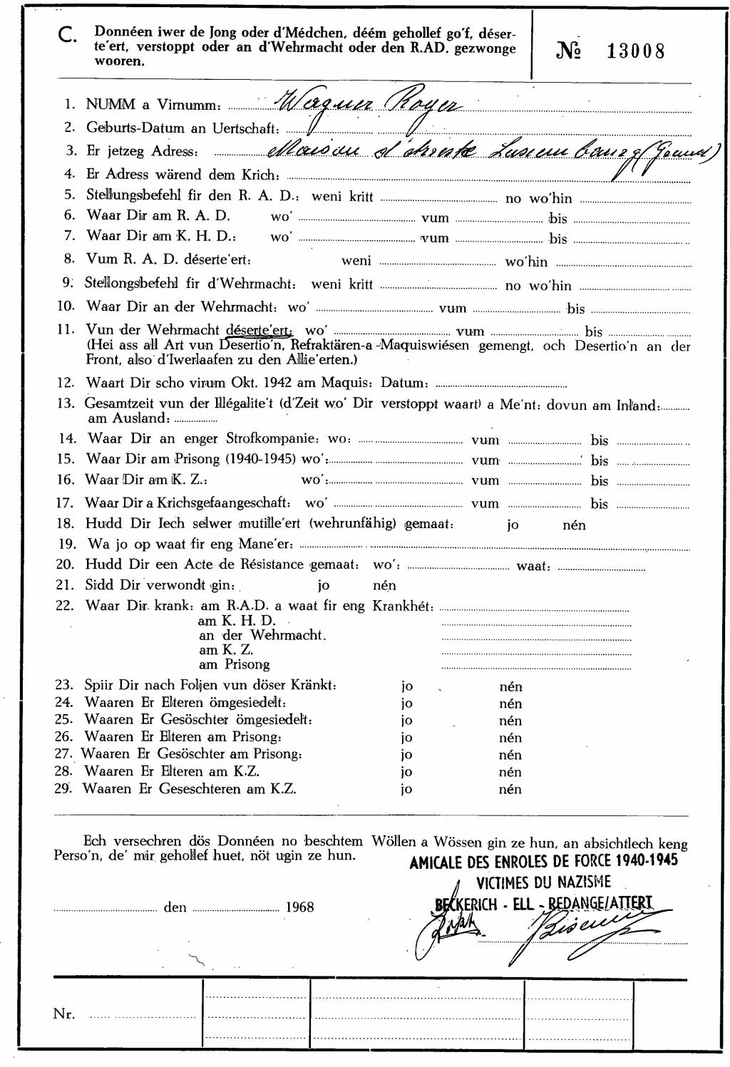 Nom, prénom, nom pendant l'occupation
