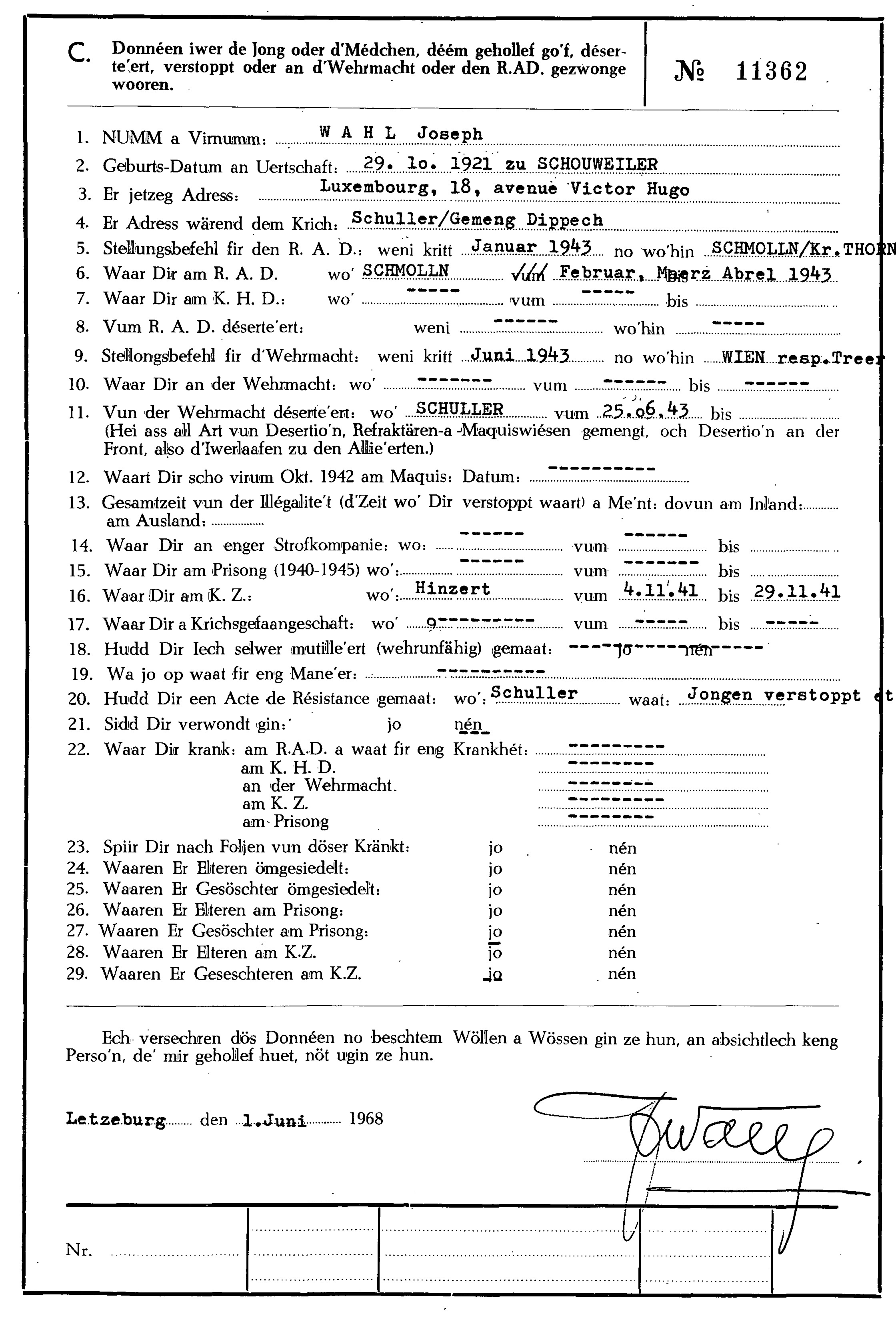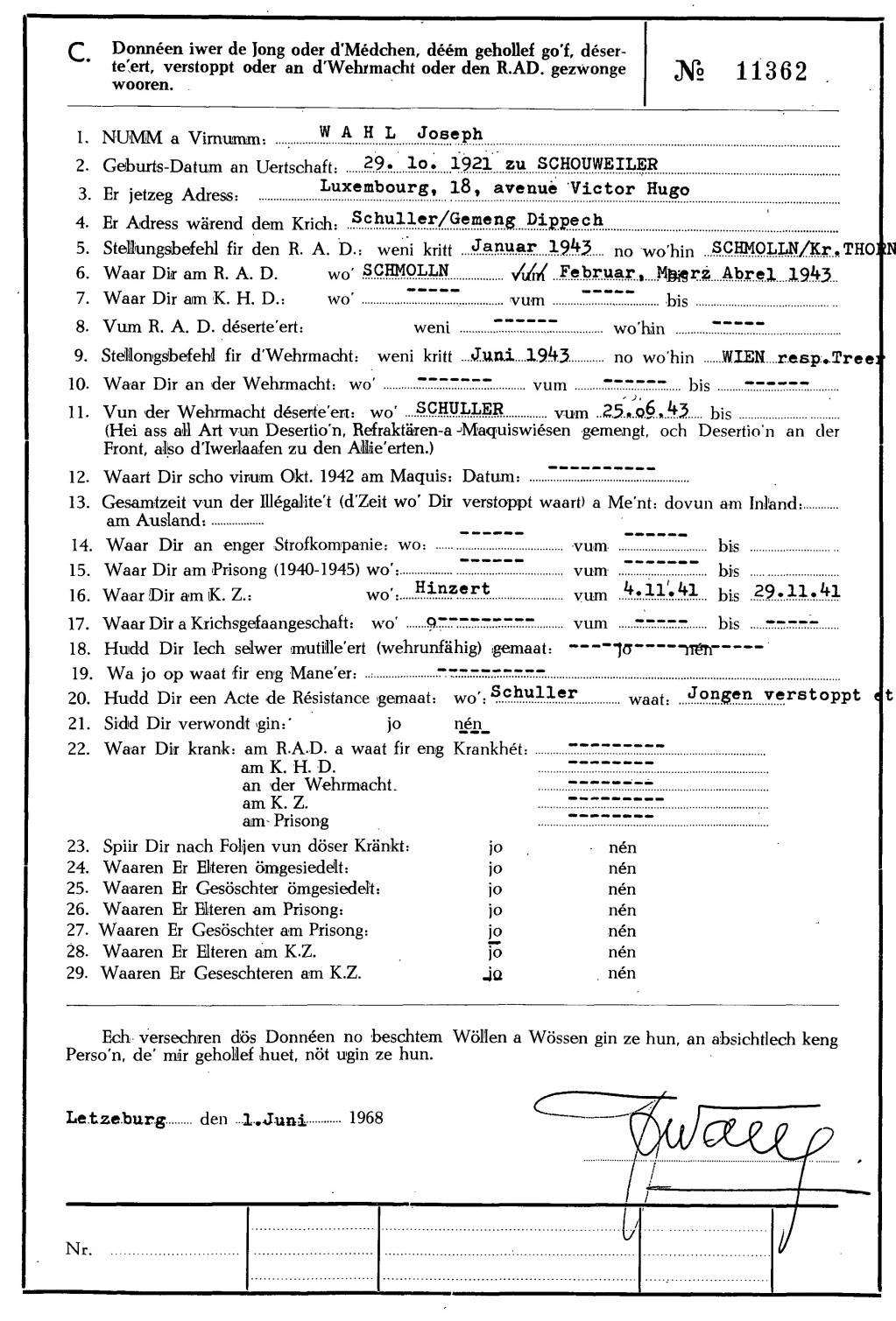 Nom, prénom, nom pendant l'occupation