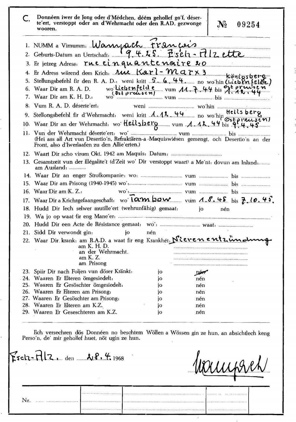 Divers RAD Bismarkhügel 7_10 BEHM 3.JPG Télécharger le document WAMPACH Francois 08041925 Esch sur Alzette 1.jpg Télécharger le document 2.jpg Télécharger le document 3.jpg Télécharger le document