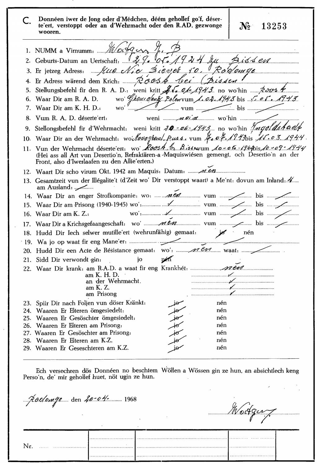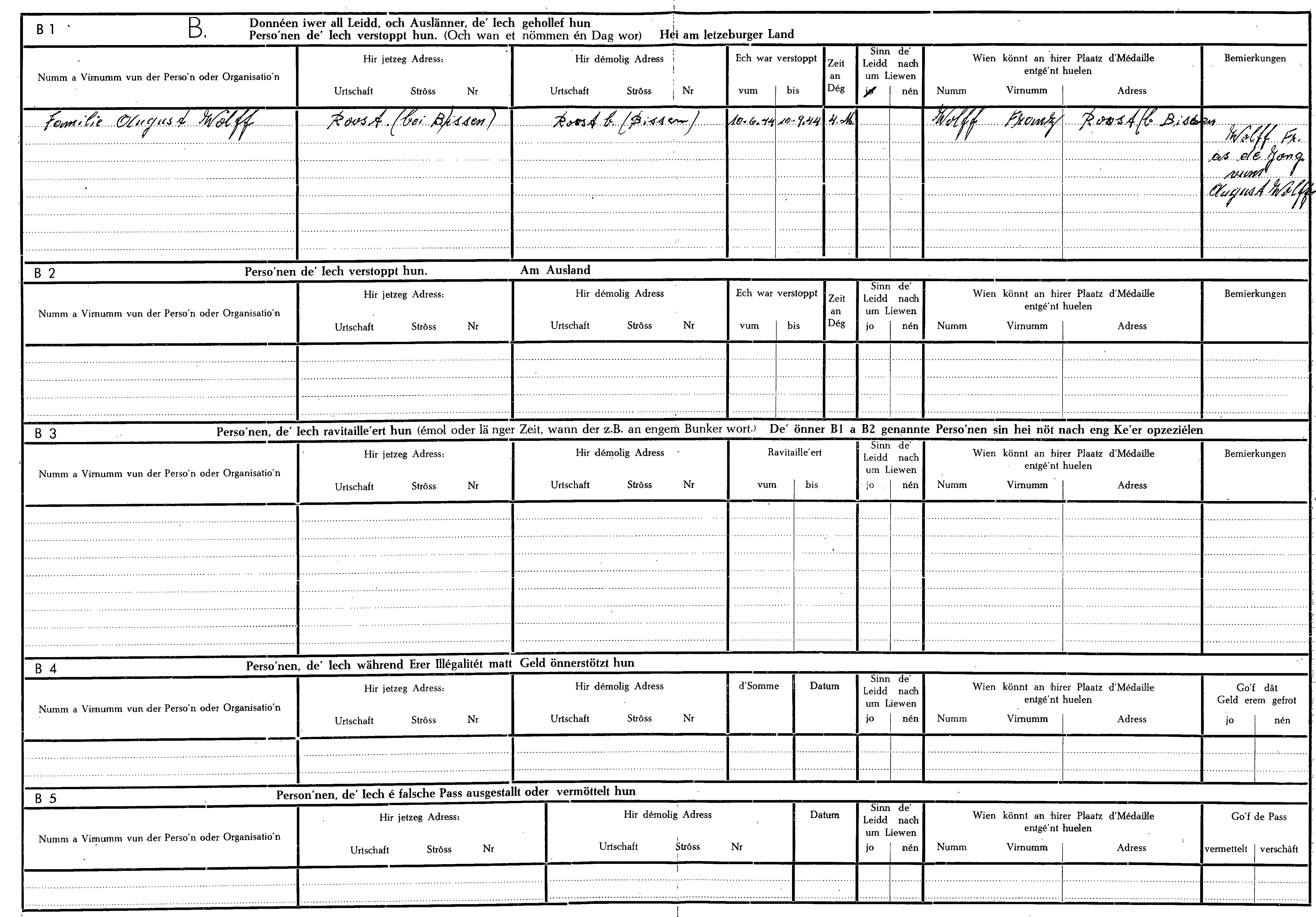 Nom, prénom, nom pendant l'occupation