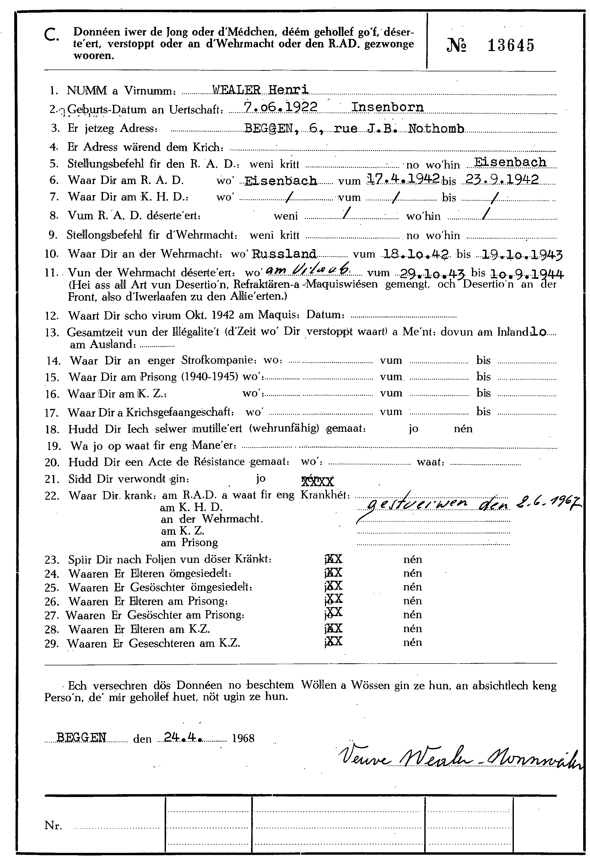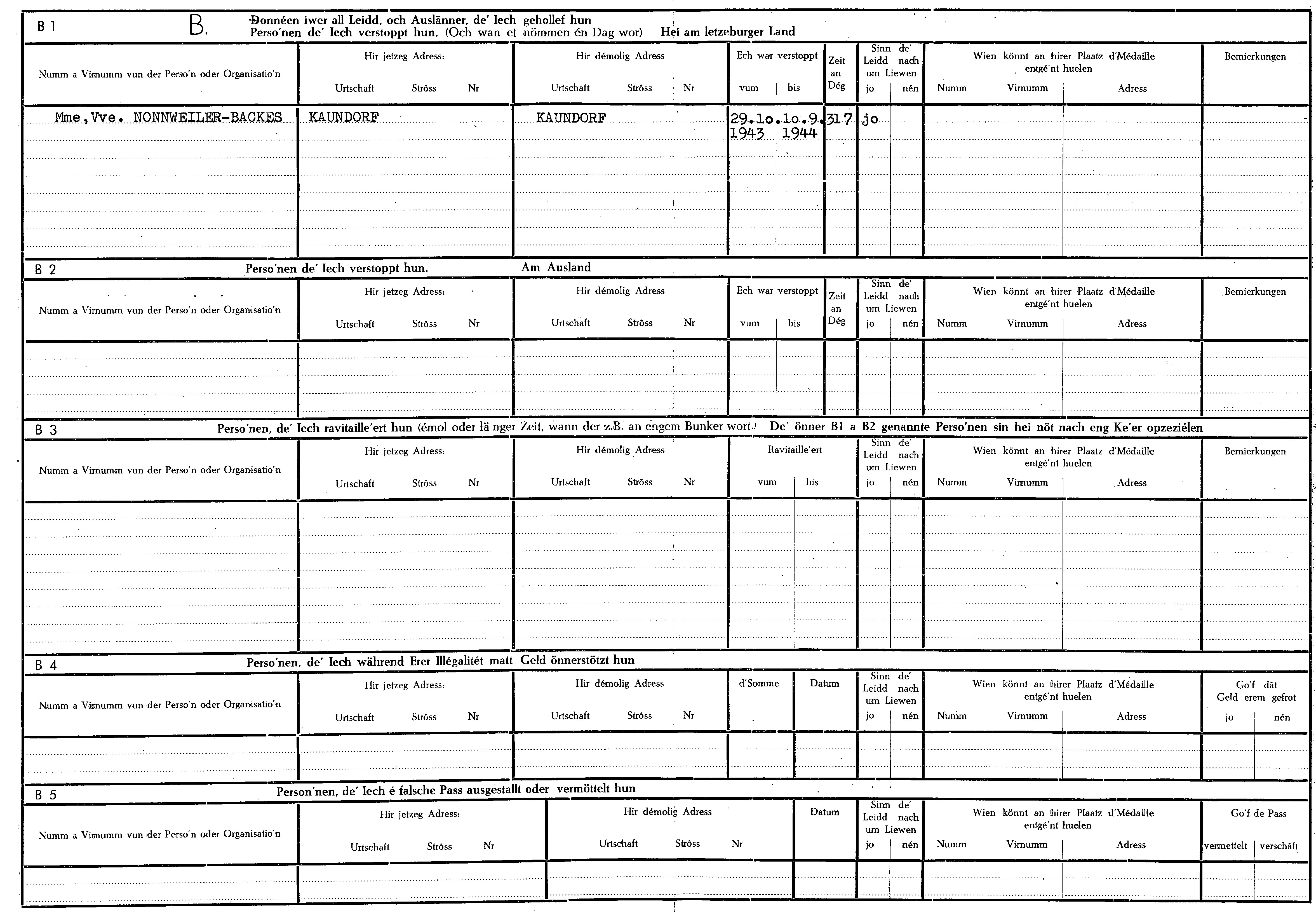 Nom, prénom, nom pendant l'occupation