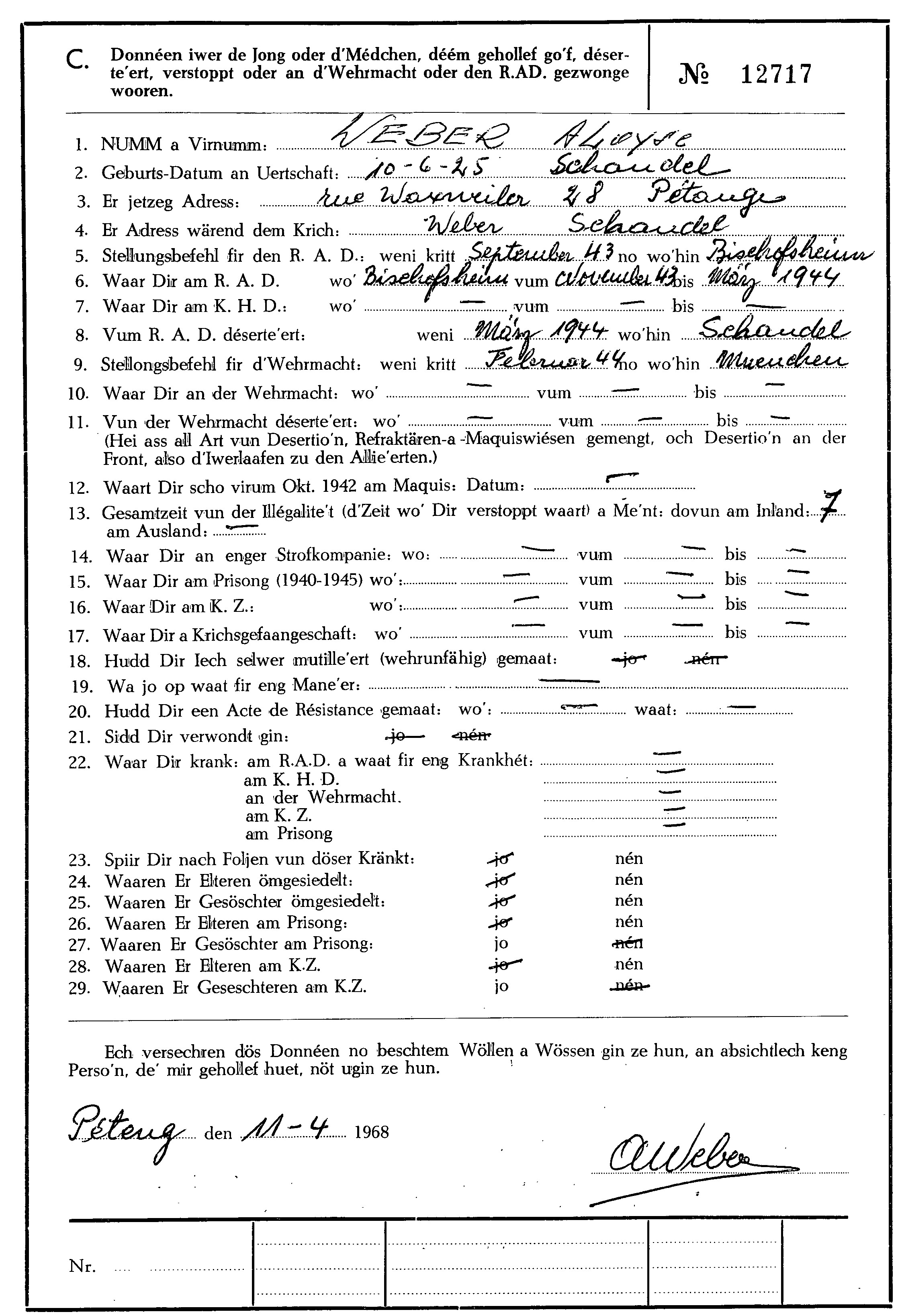 Nom, prénom, nom pendant l'occupation