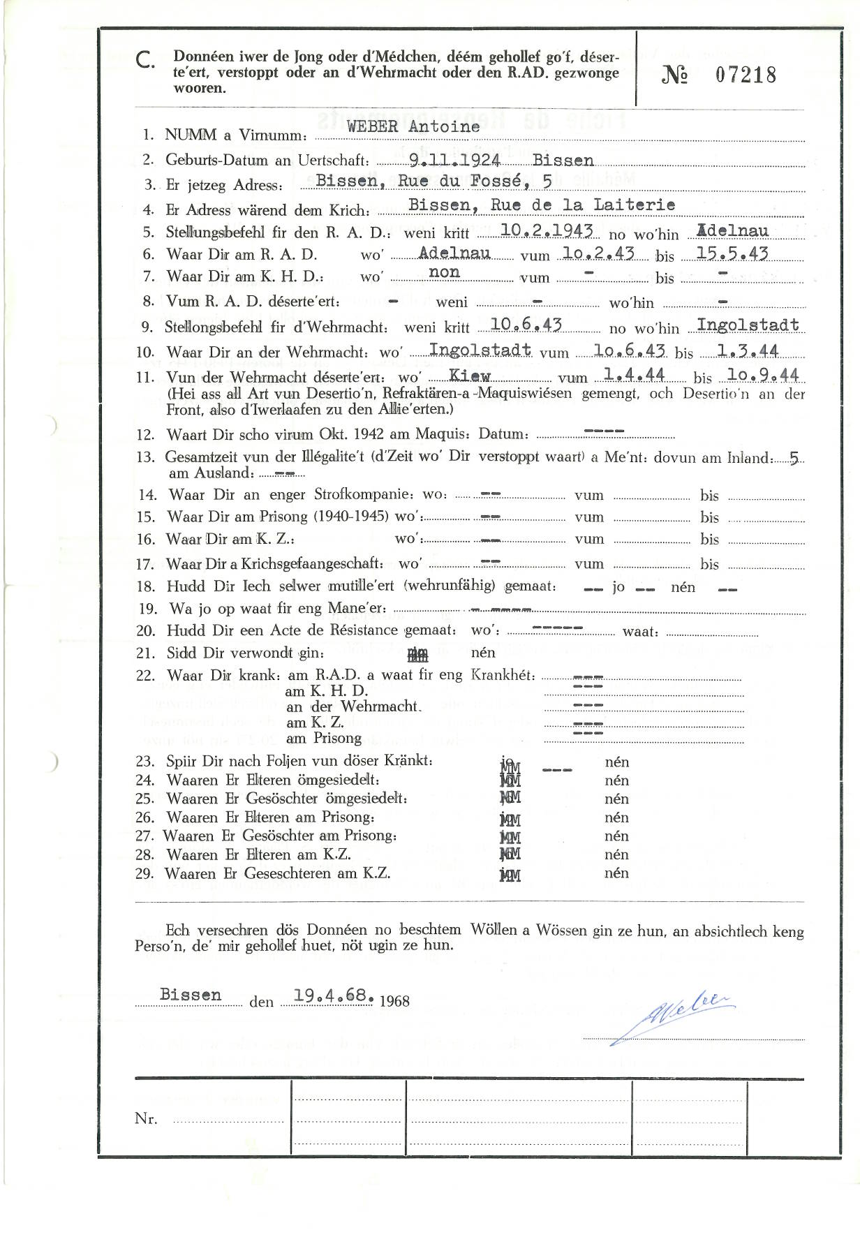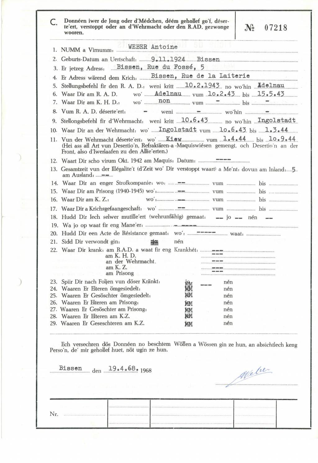 Nom, prénom, nom pendant l'occupation