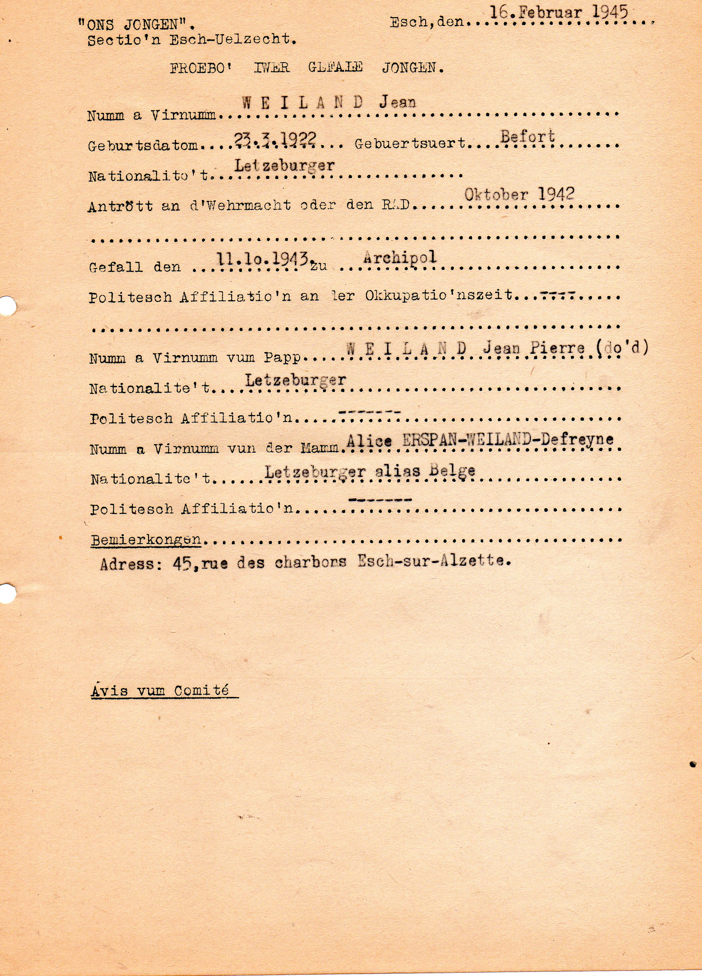 Divers Img1270.jpg Télécharger le document SchüttringenMT.jpg Télécharger le document Weiland_Jean_23031922_ESCH_ALZETTE.jpg Télécharger le document