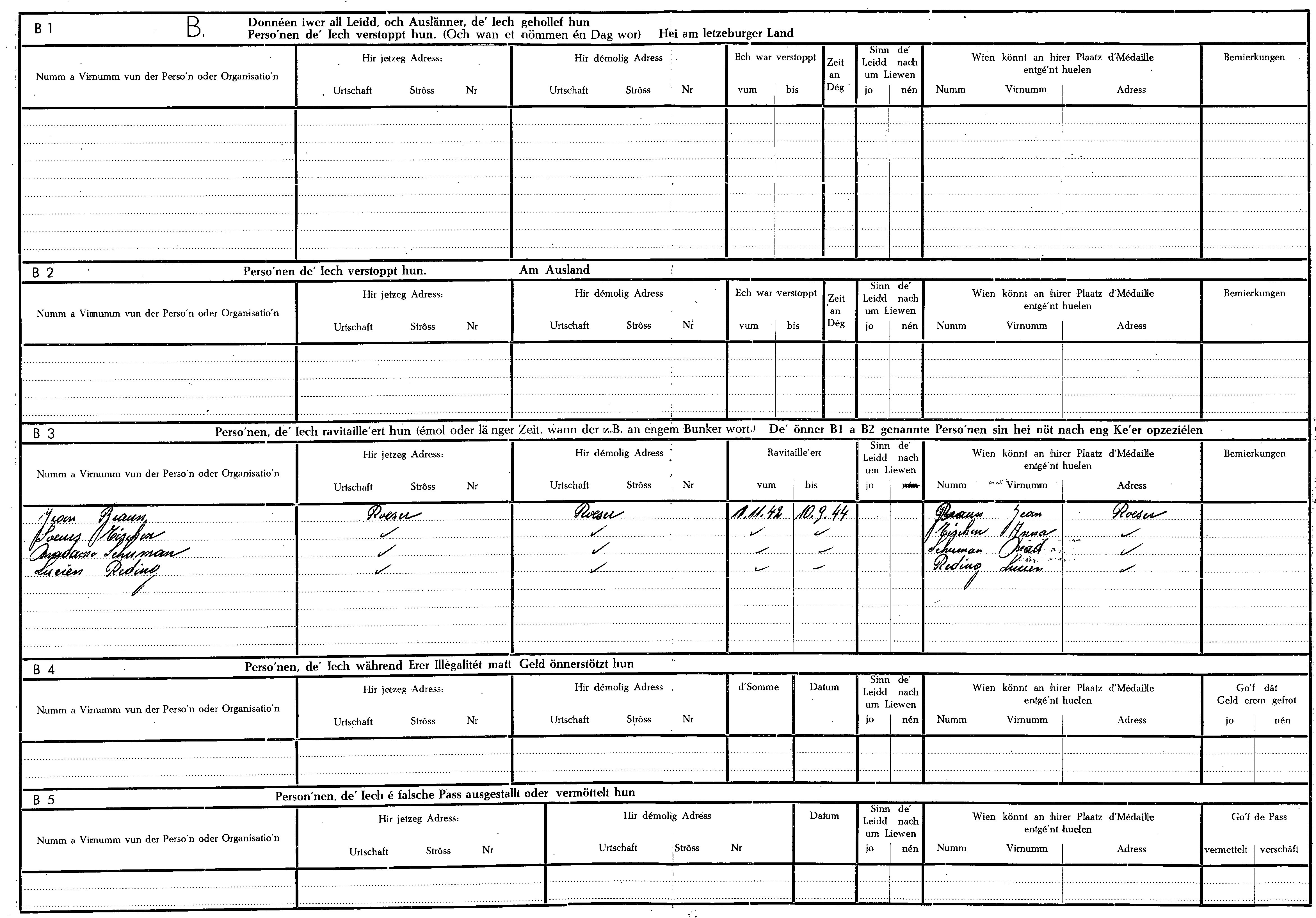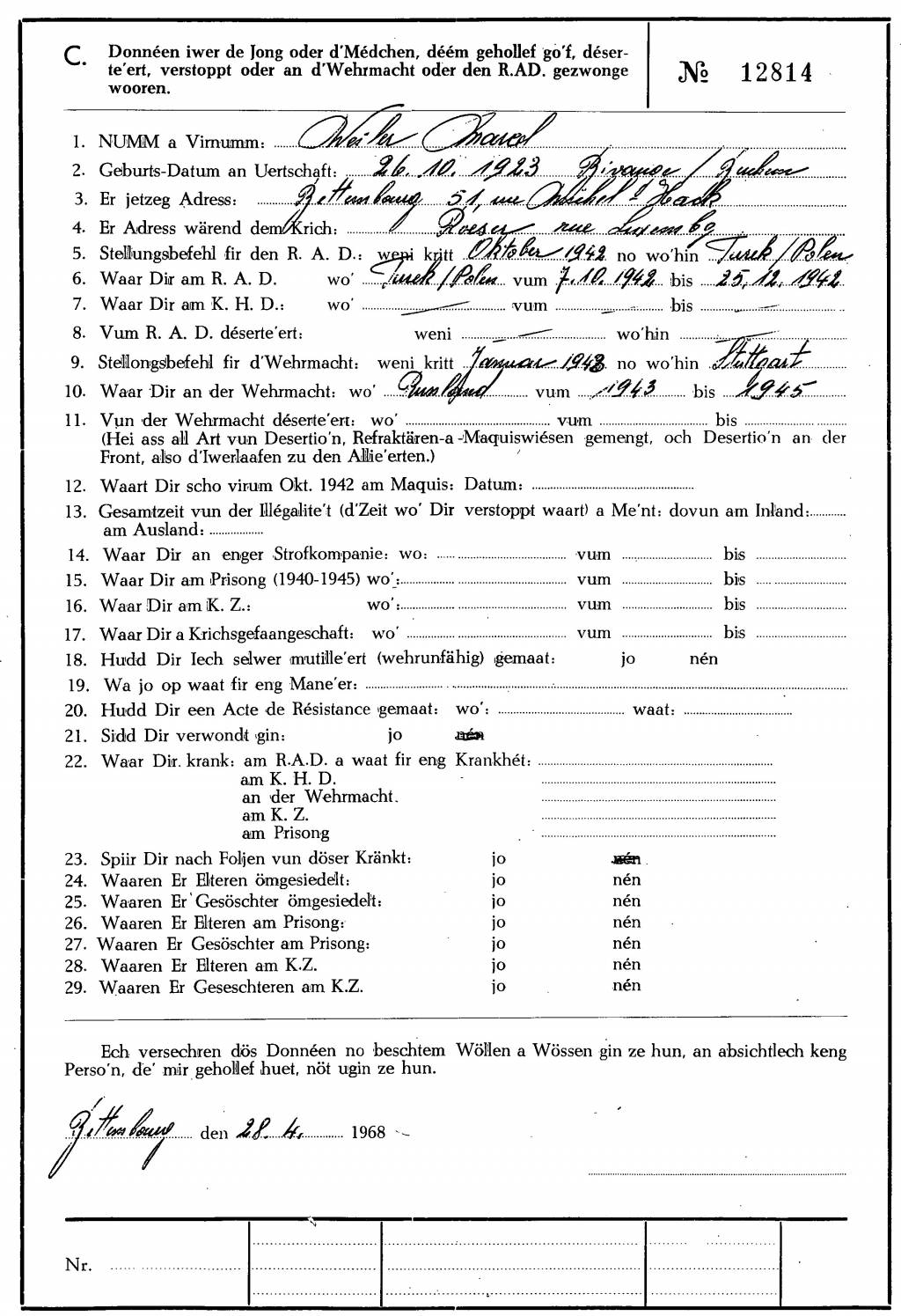 Nom, prénom, nom pendant l'occupation