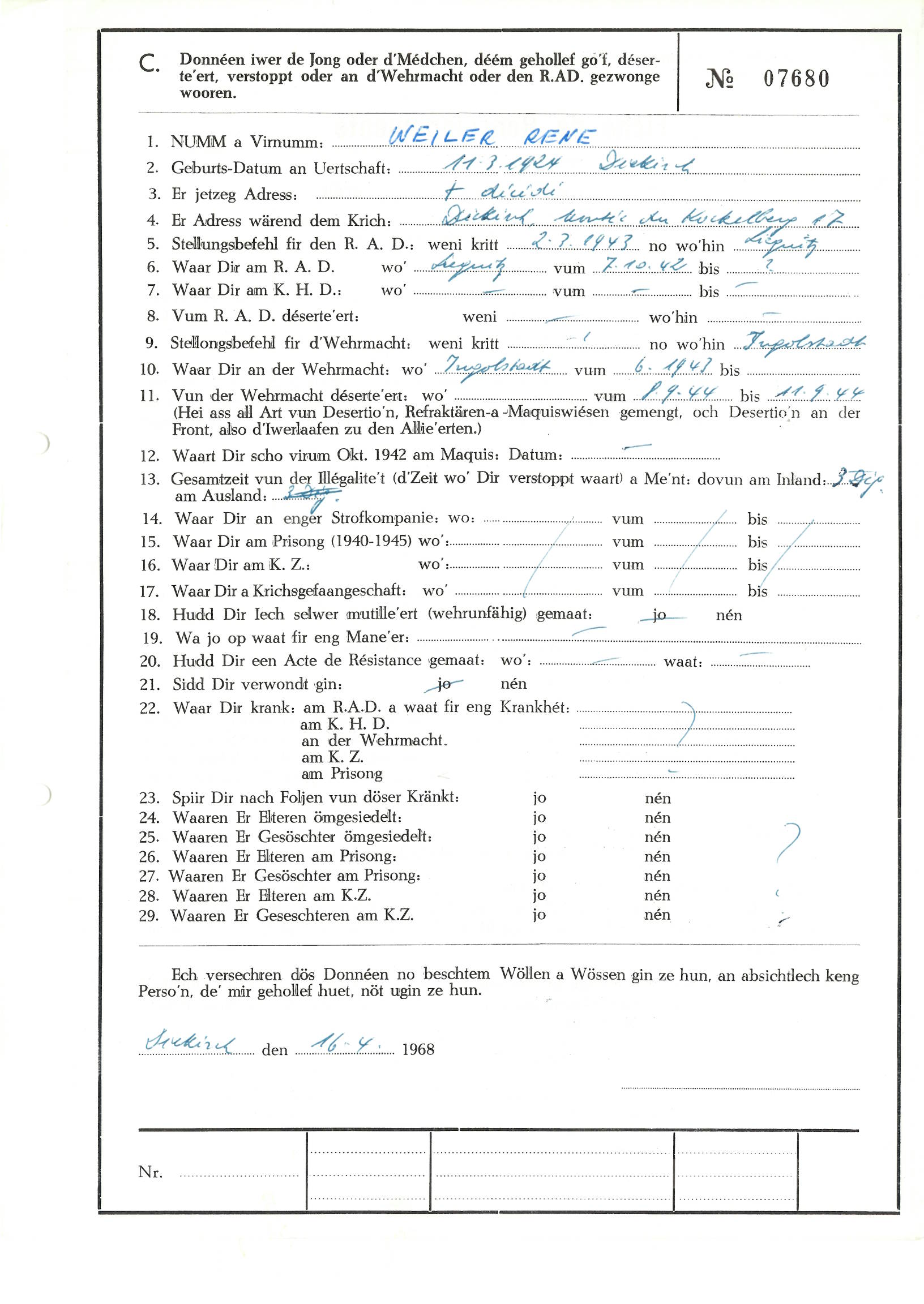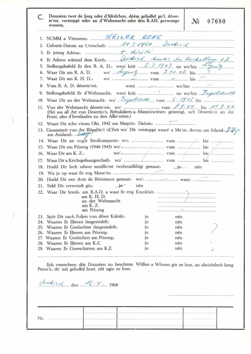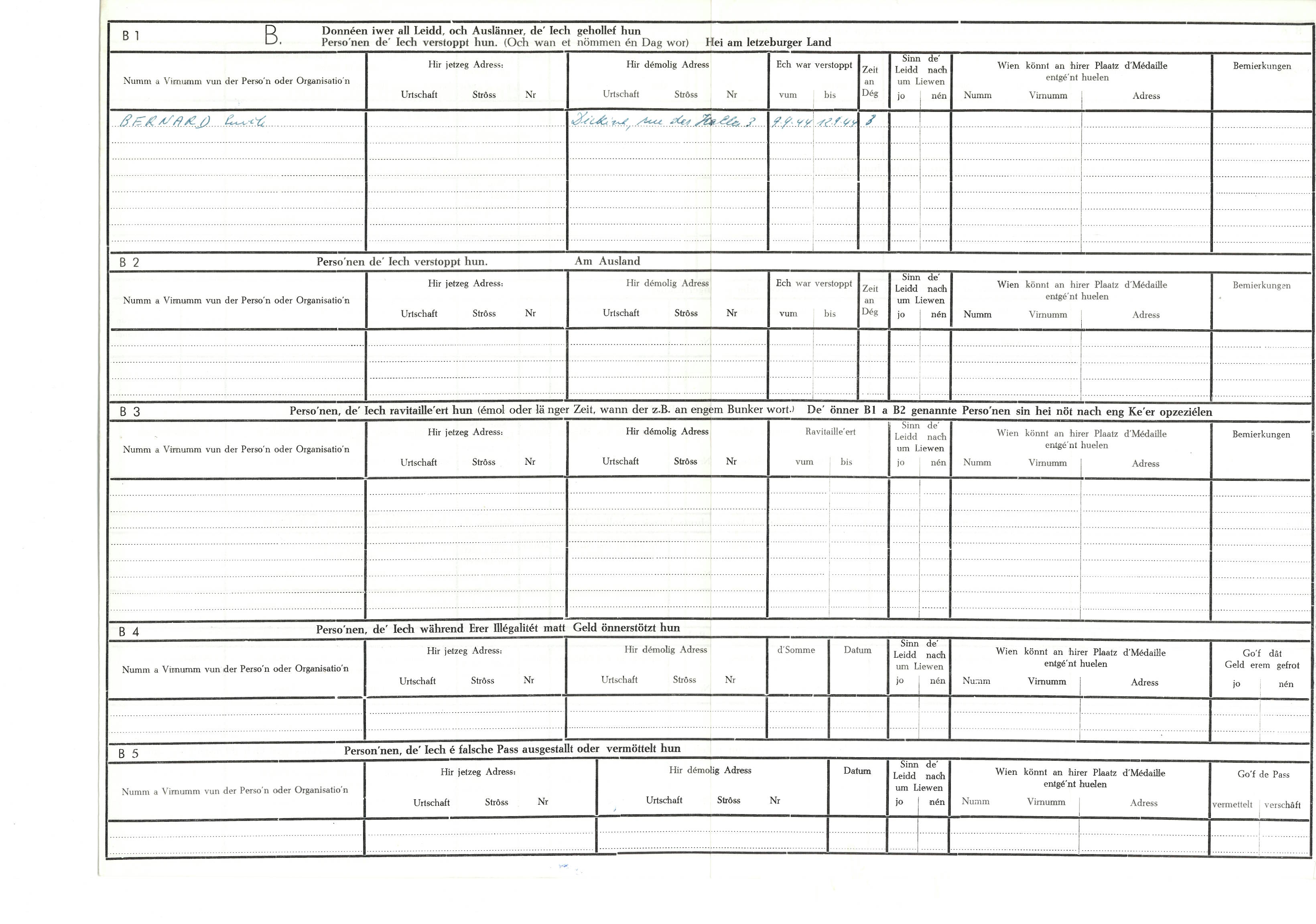 Nom, prénom, nom pendant l'occupation